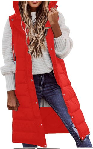 Puffer Vest Womens Fashion Sleeveless Outdoor Long Puffer Vest Zip Up Button Jacket Oversized Winter Coats for Women