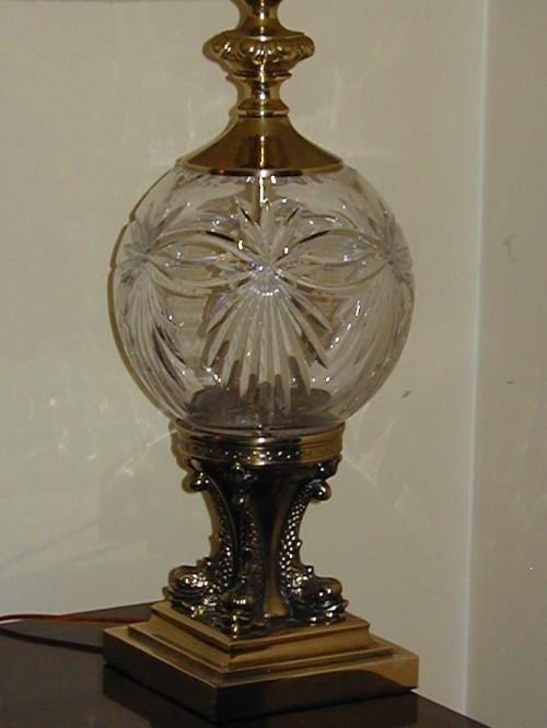 Pair Brass & Crystal Lamps with Oriental Sea Serpent Base; 34" tall