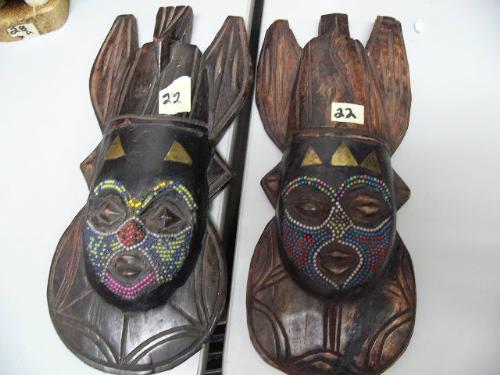 Pair of 13" African Wood masks with Beads and Brass, Old (2)