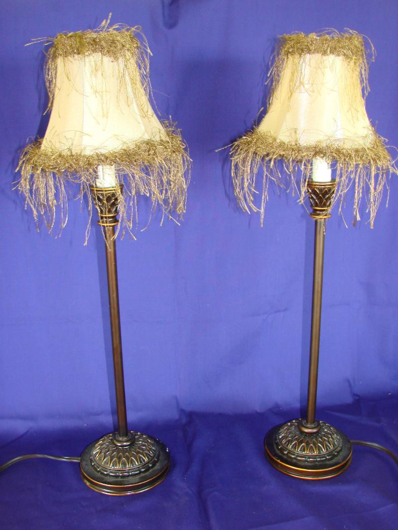Pair of buffet lamps with fringe, apprx. 21" tall