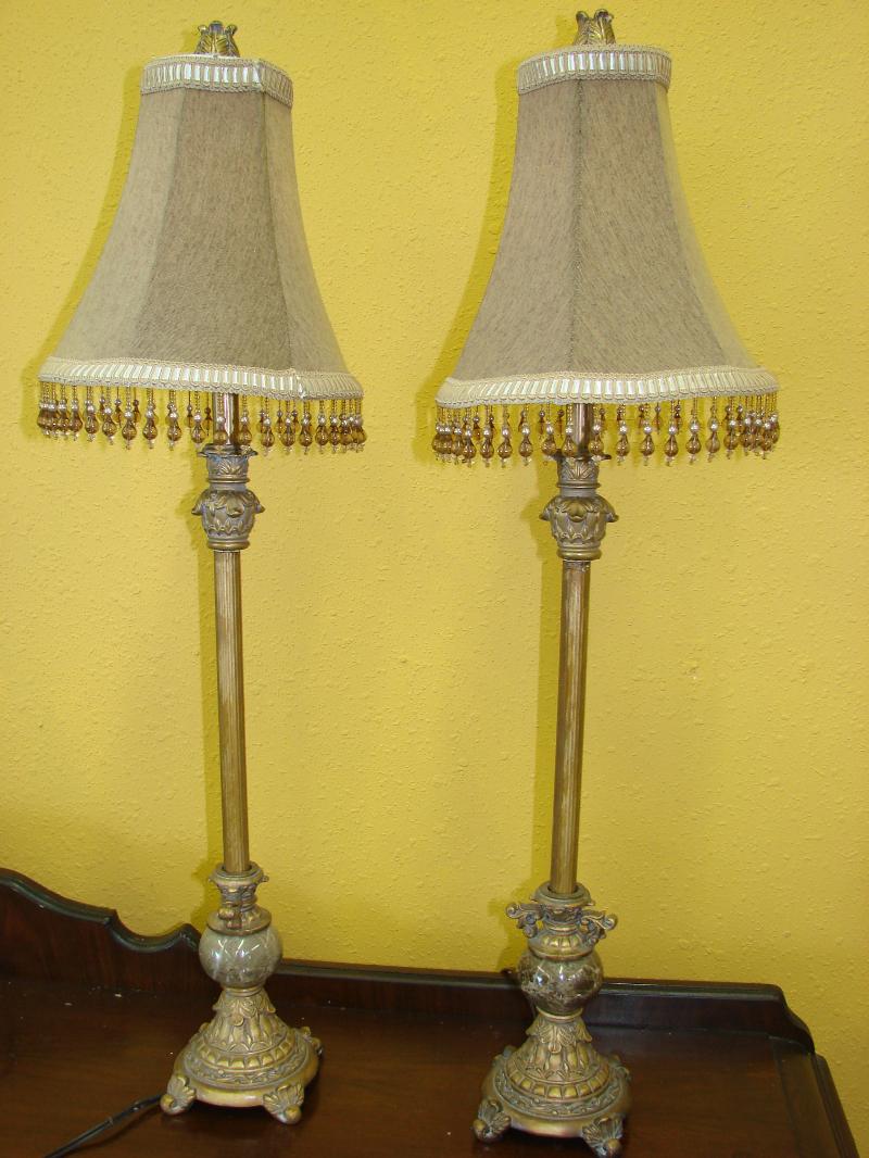 Pair of buffet lamps, with beaded fringe shades, apprx. 30" tall