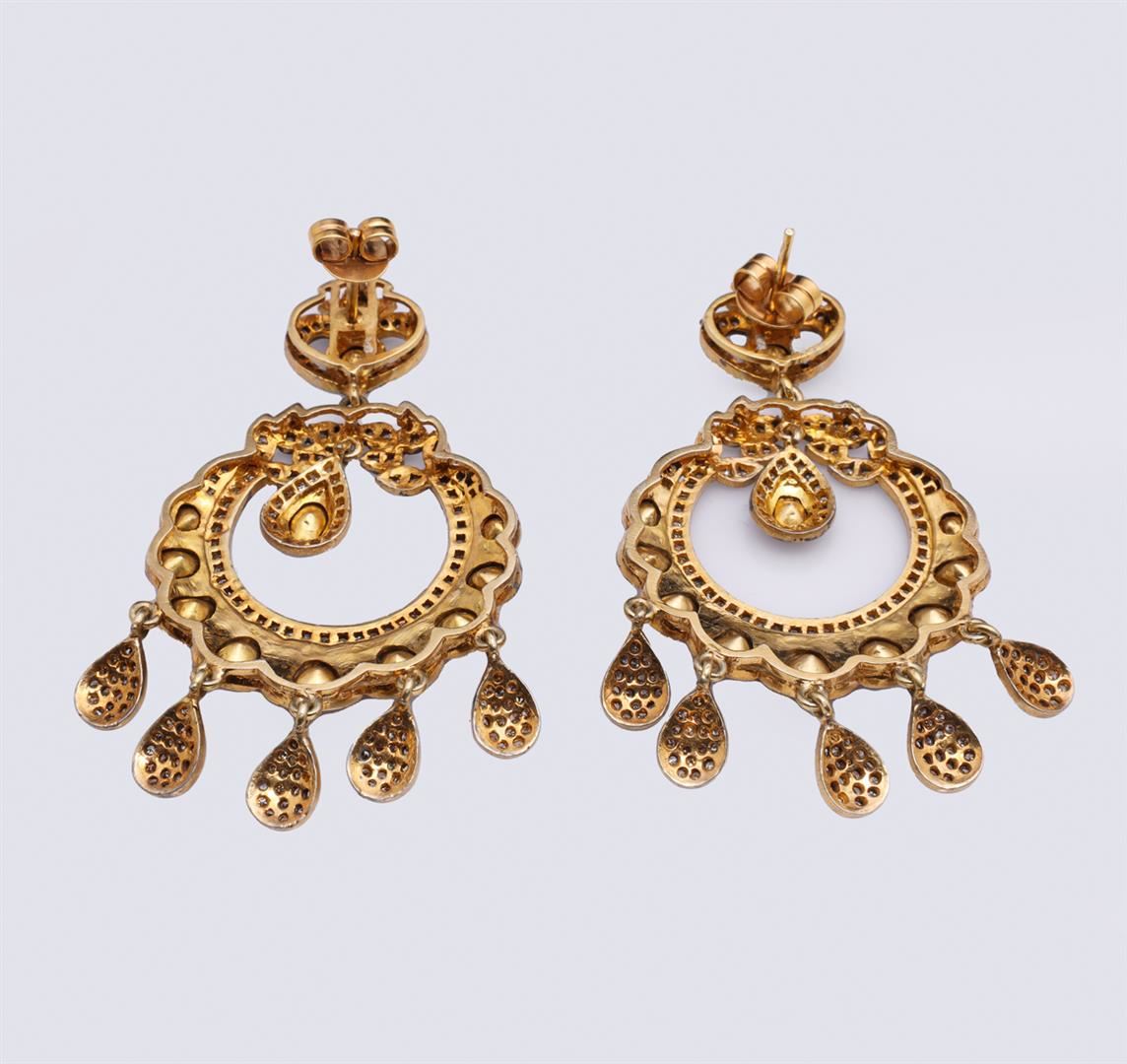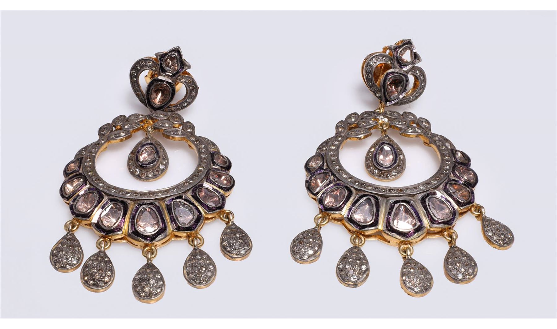 Pair of Mogul Style Silver Topped Gold & Polki Diamond Earrings containing diamonds weighing approximately 8.0 cts. Total weight is 14.7 gm. Estimated retail value $1,000.