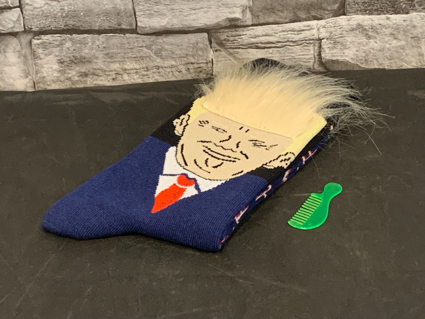 Pair of Novelty Trump Socks with Hair and Comb