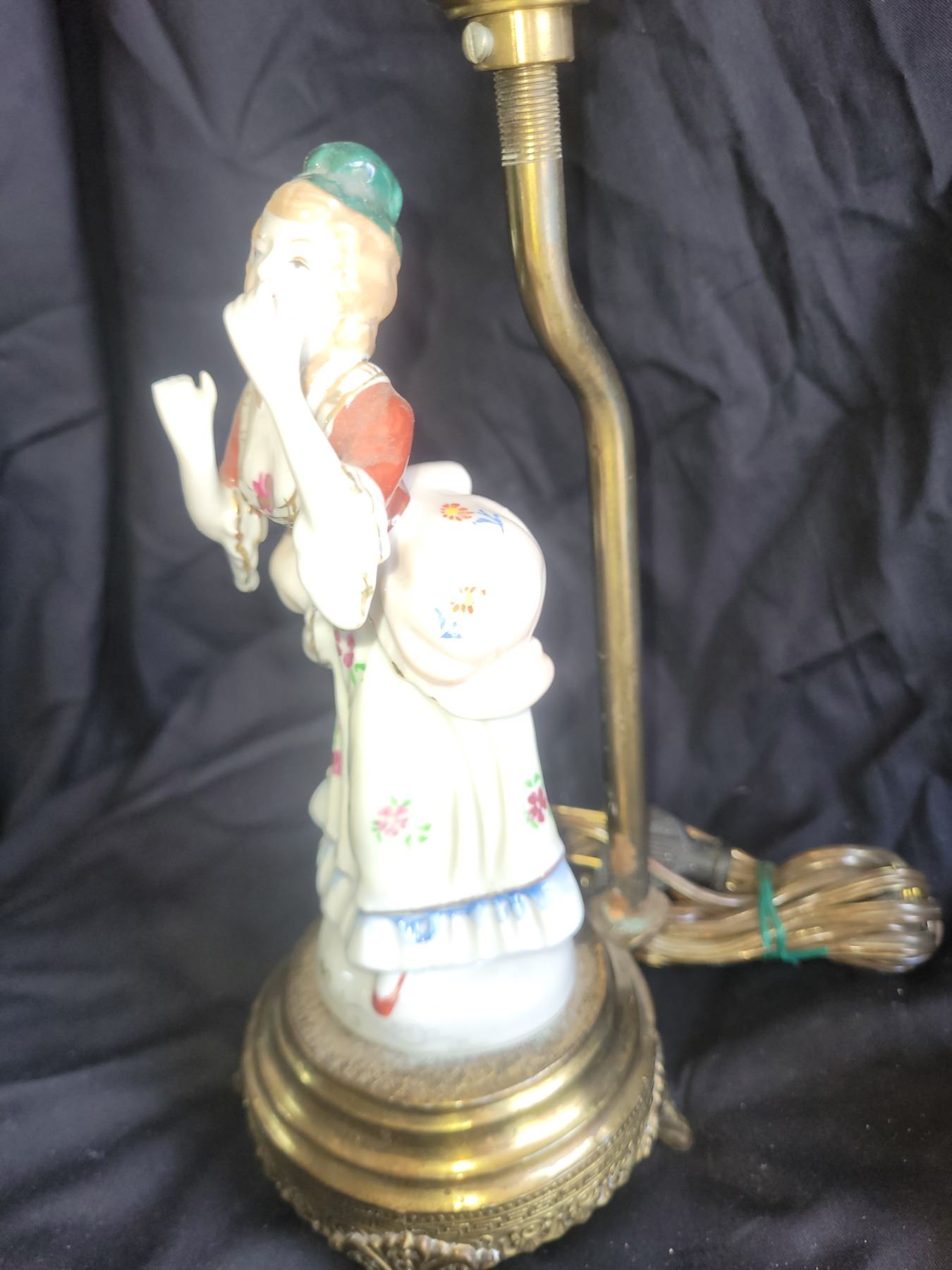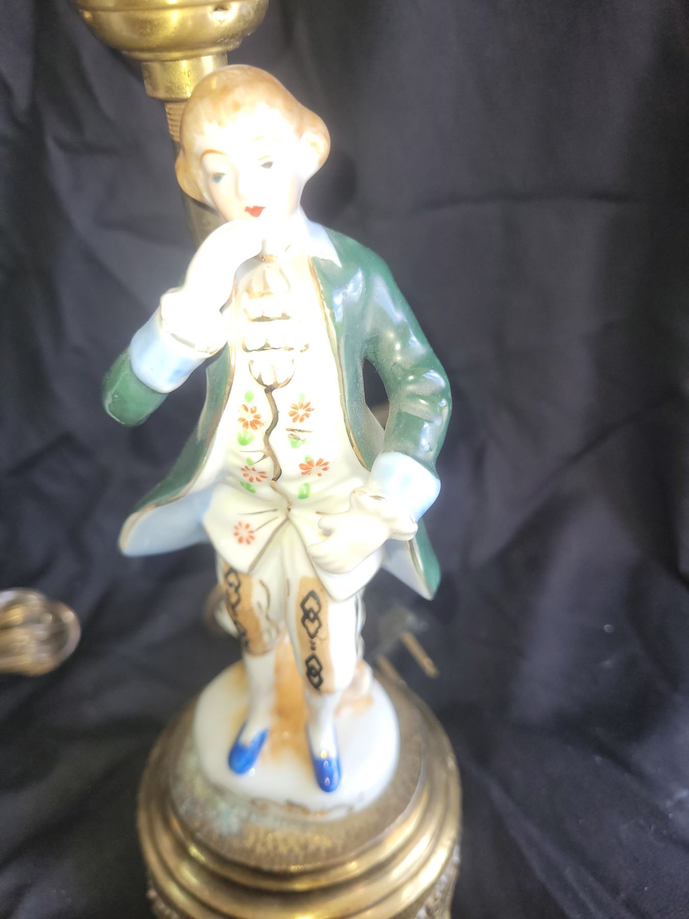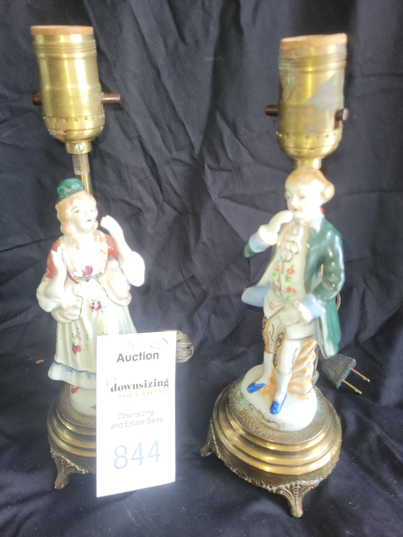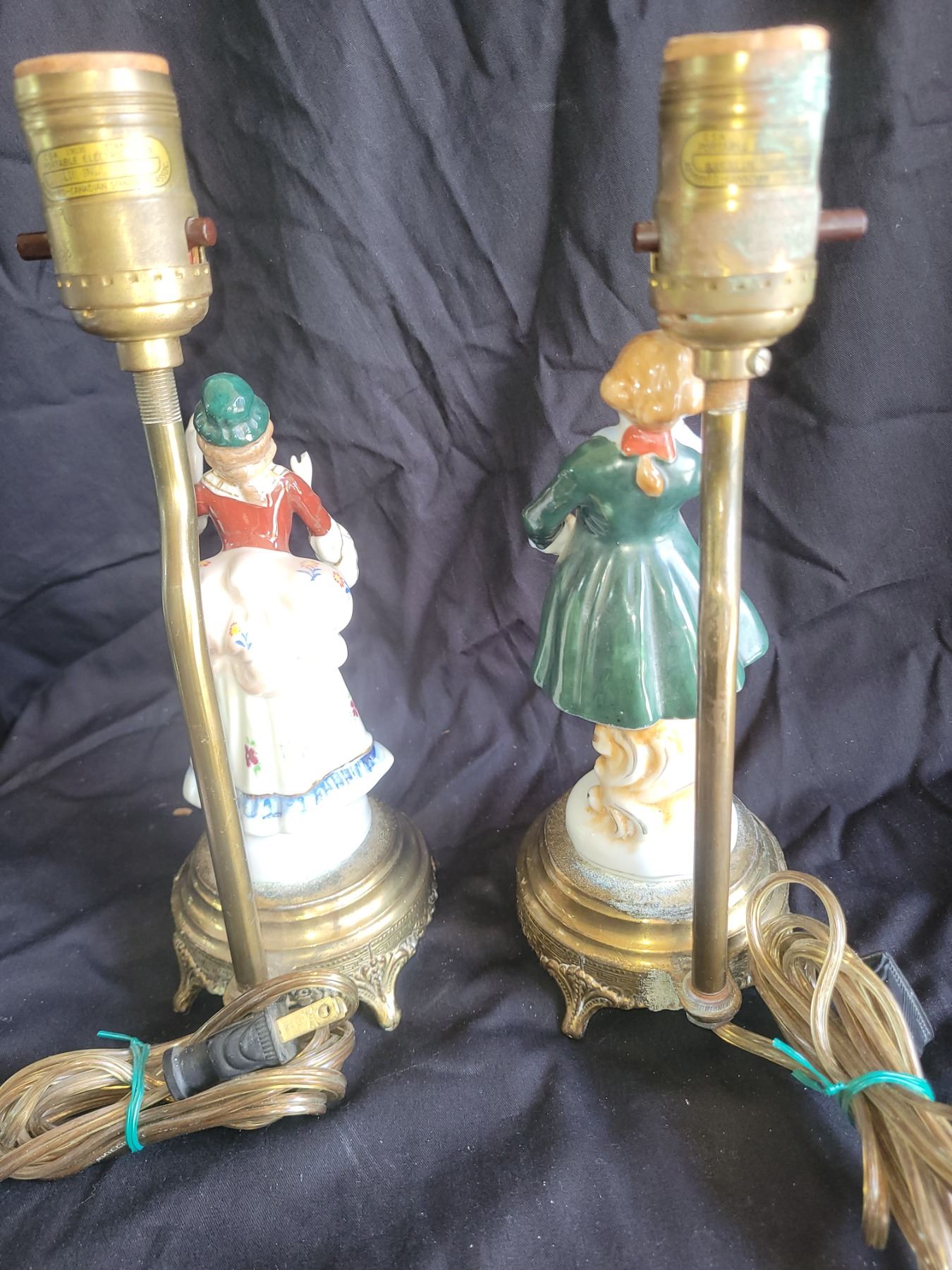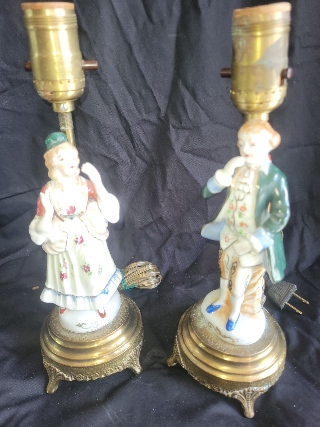 Vintage lamps with porcelain figurine of man & woman on each. 11". Pickup at 9 am