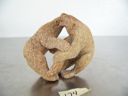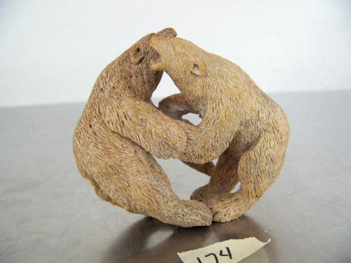 Pair of fighting brown bears 2-1/2" carved from bone- imported, not Alaskan ()