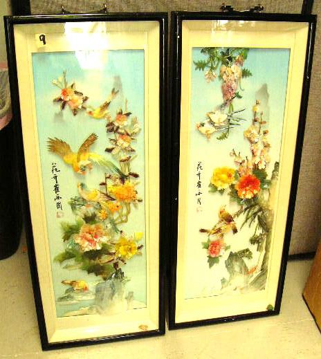 Pair of signed oriental pictures of bird done with shell and etc. (46)