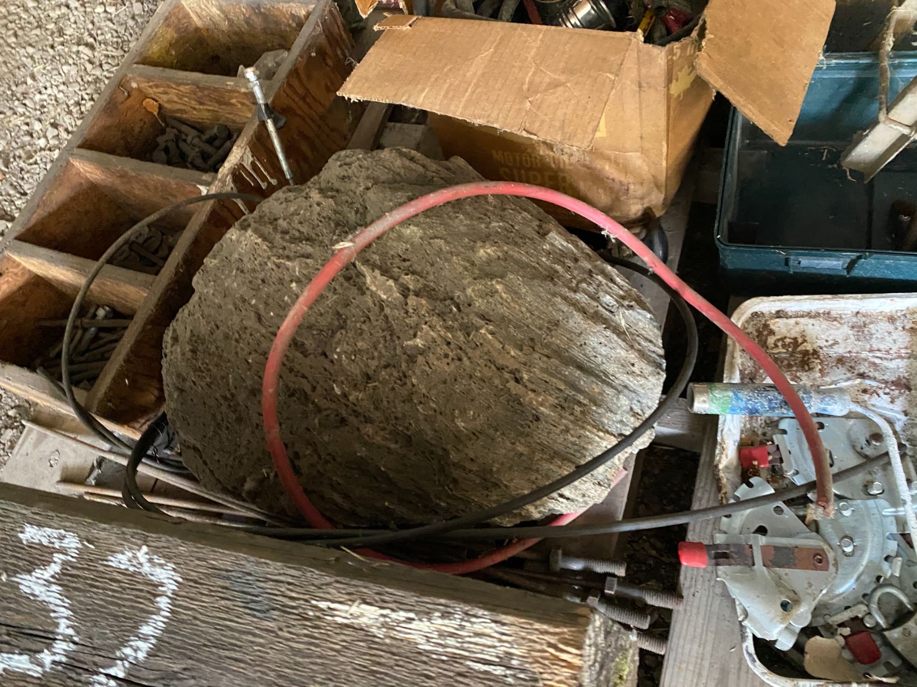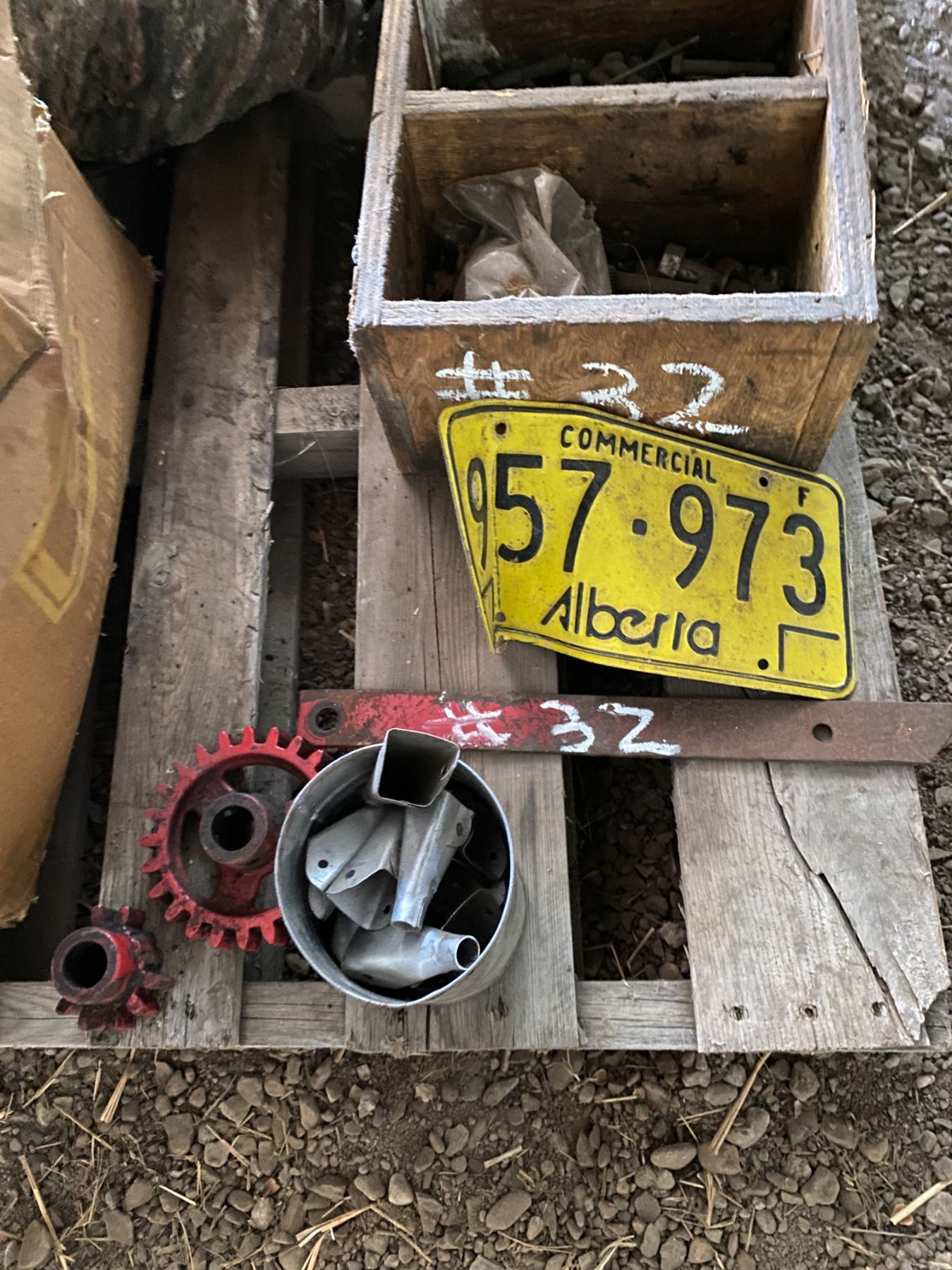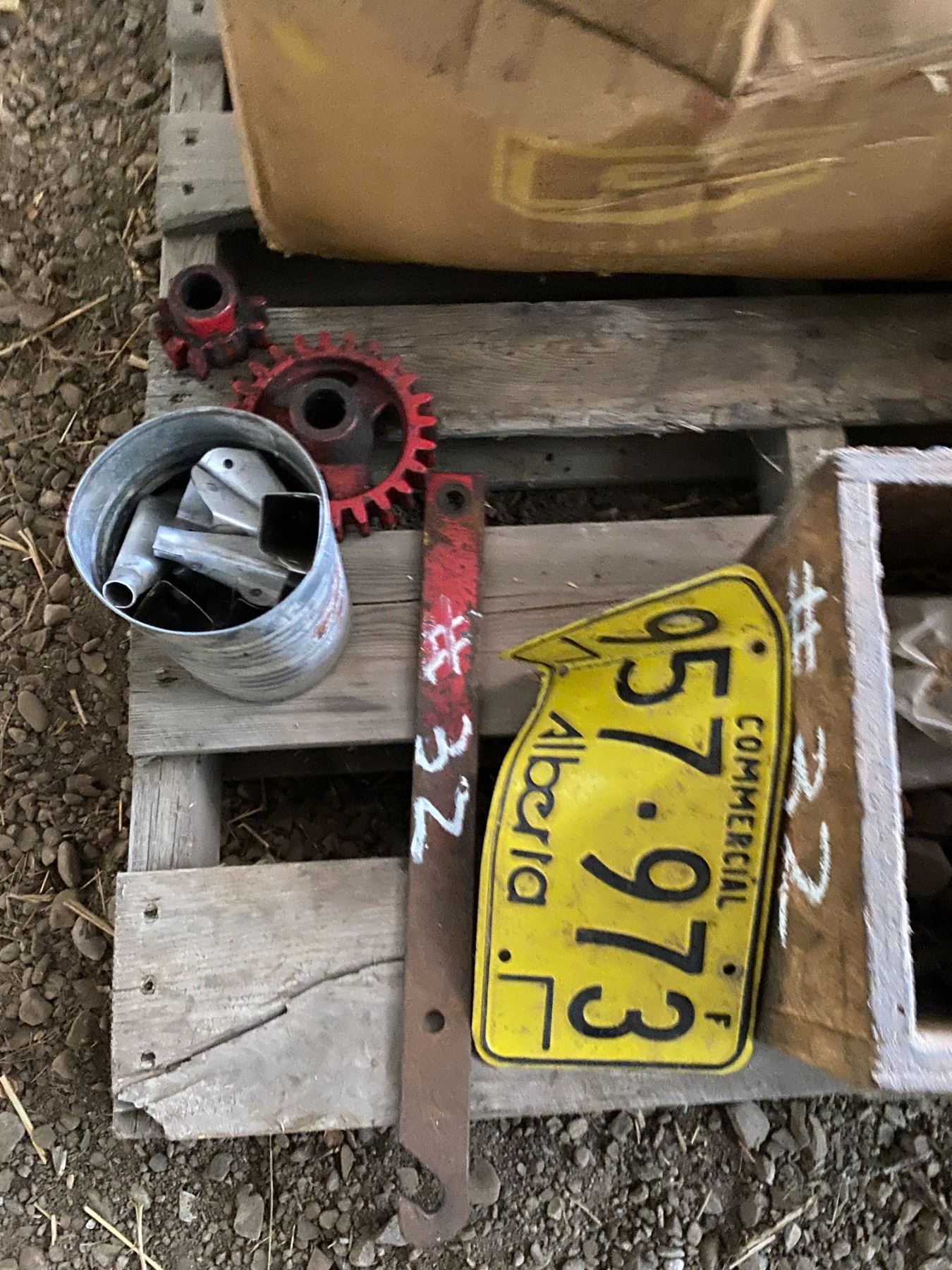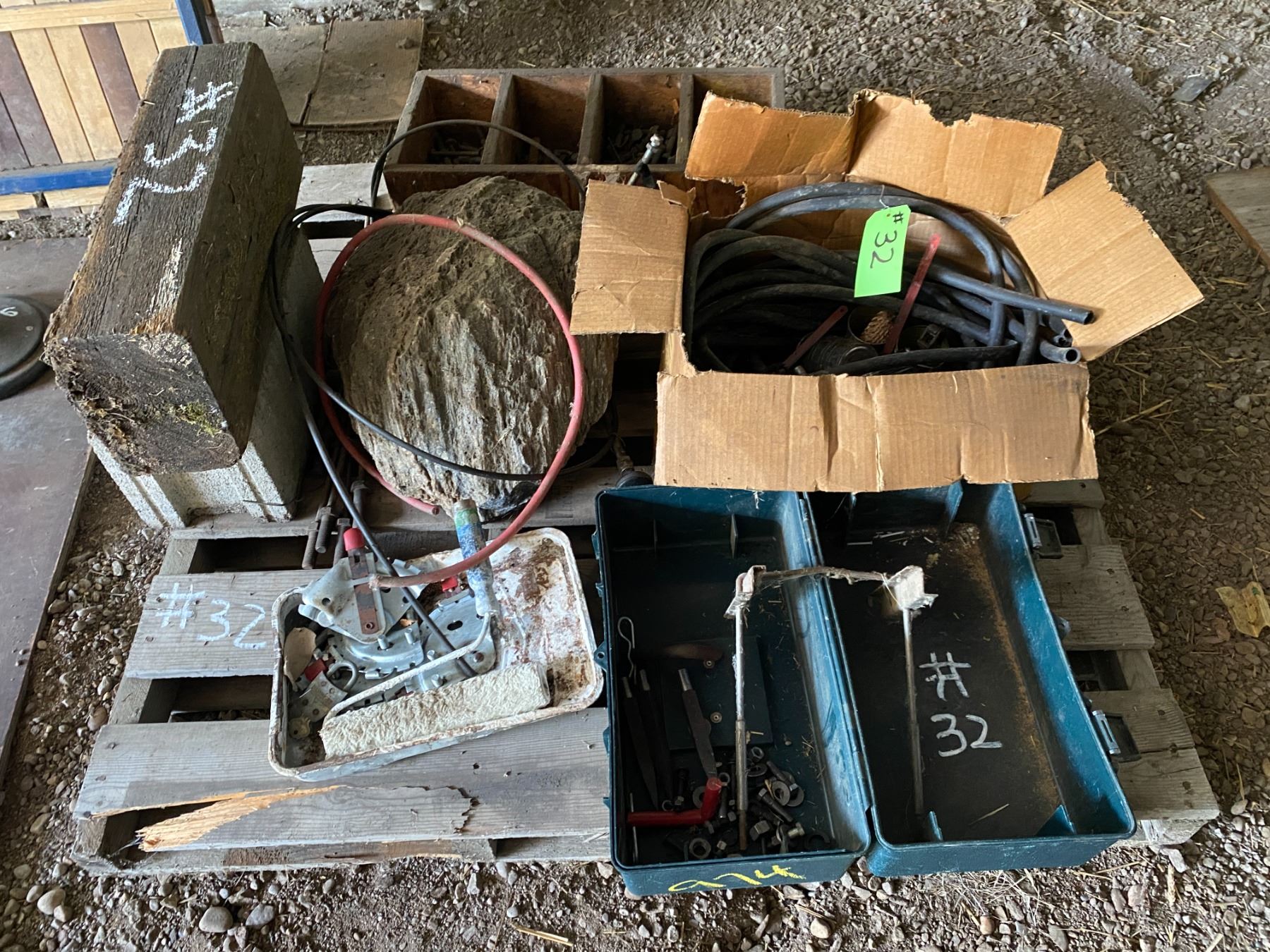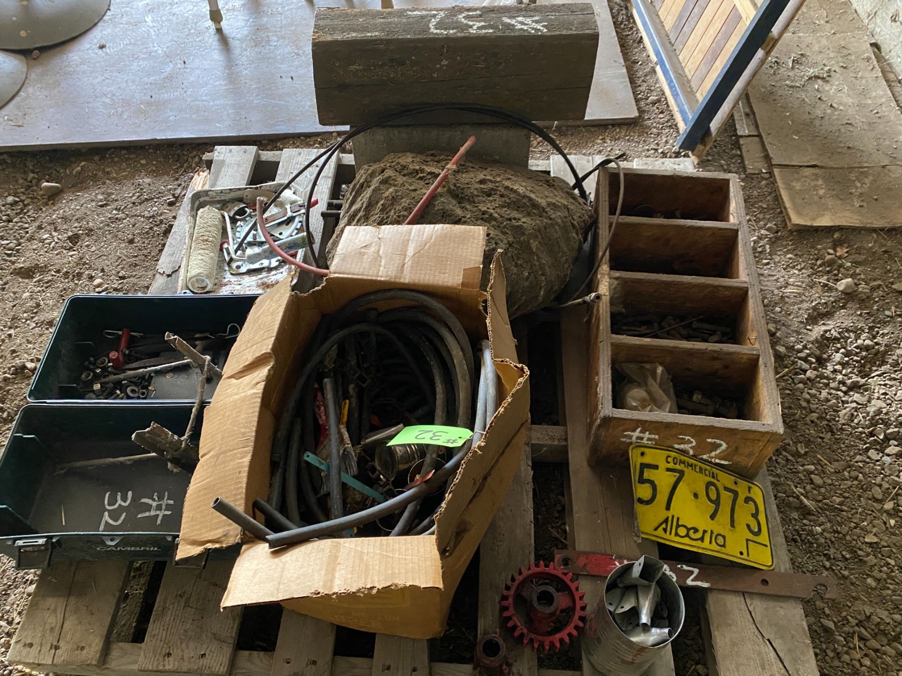 Pallet of Misc., Bolts, Washers, Gears, Cinder Block, Rock