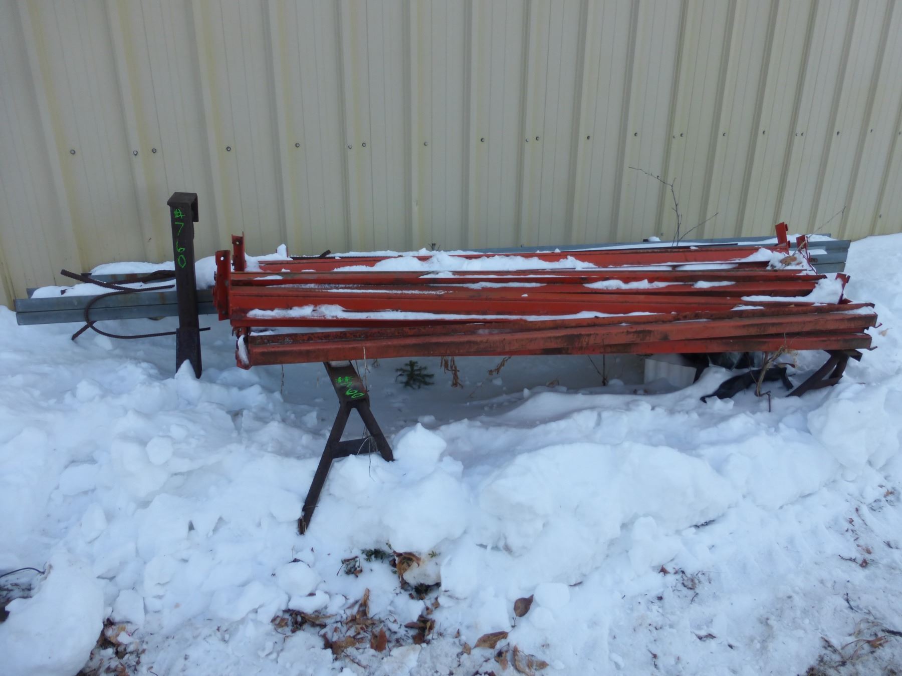 Pallet racking bracing, 2- steel saw horses, 6" I-Beam and yellow pallet rack frame