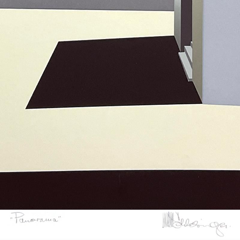 "Panorama" is a limited edition serigraph on paper by William Schlesinger (1915-2011), numbered and hand signed by the artist. Includes Letter of Authenticity. Measures approx. 26" x 32" (border), 20.5" x 25.5" (image). Due to the age of this piece there may be very minor imperfections on the paper.