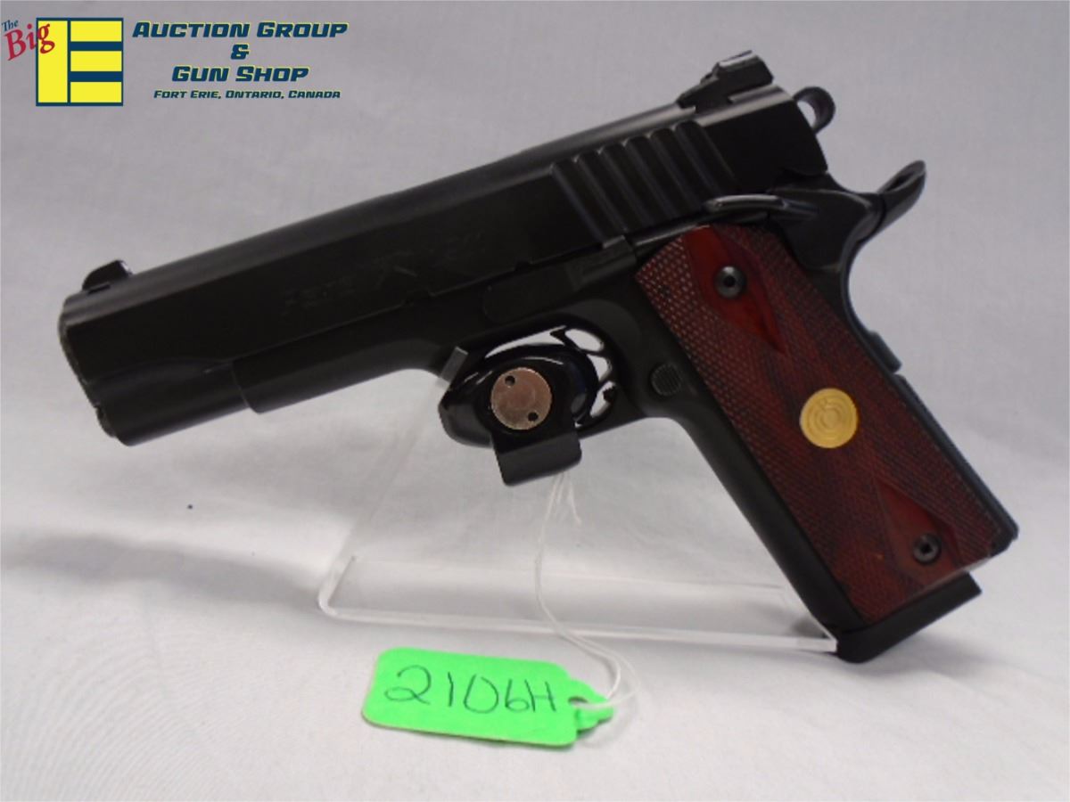 PARA ORDNANCE -45mm Model P 13-45, Sub compact 1911 Semi Automatic Handgun, Sieer Frame and top slide, 4.25” Barrel with 3 Dot Sights, Black plastic grids, Double stand Frame, 2 Magazines. Condition 8.5/10, Made I n Canada. SN P204XXX Stock 2106HR-5263 G1