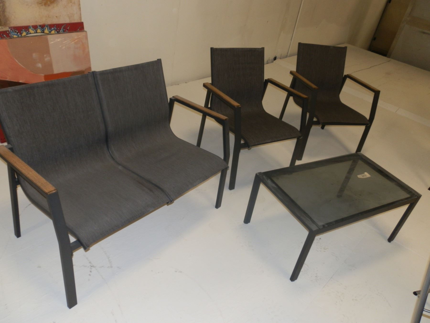 Patio Furniture in good condition... you get one 2 seat bench, 2 single chairs and a glass coffee table...used