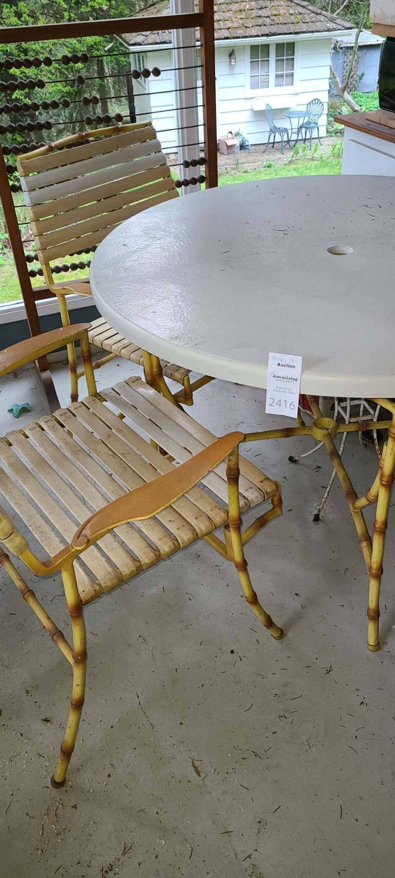 2 chairs and round table with unique finish, table measures 41x41x29. Pickup at 11 am