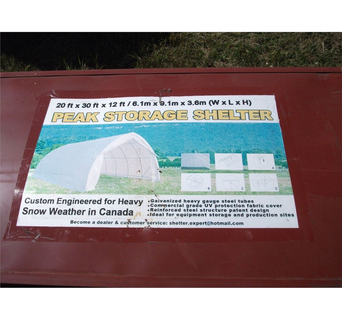 New; 20' x 30' x 12'; galvanized gauge steel tubes; commercial grade UV protection fabric cover; reinforced steel structure