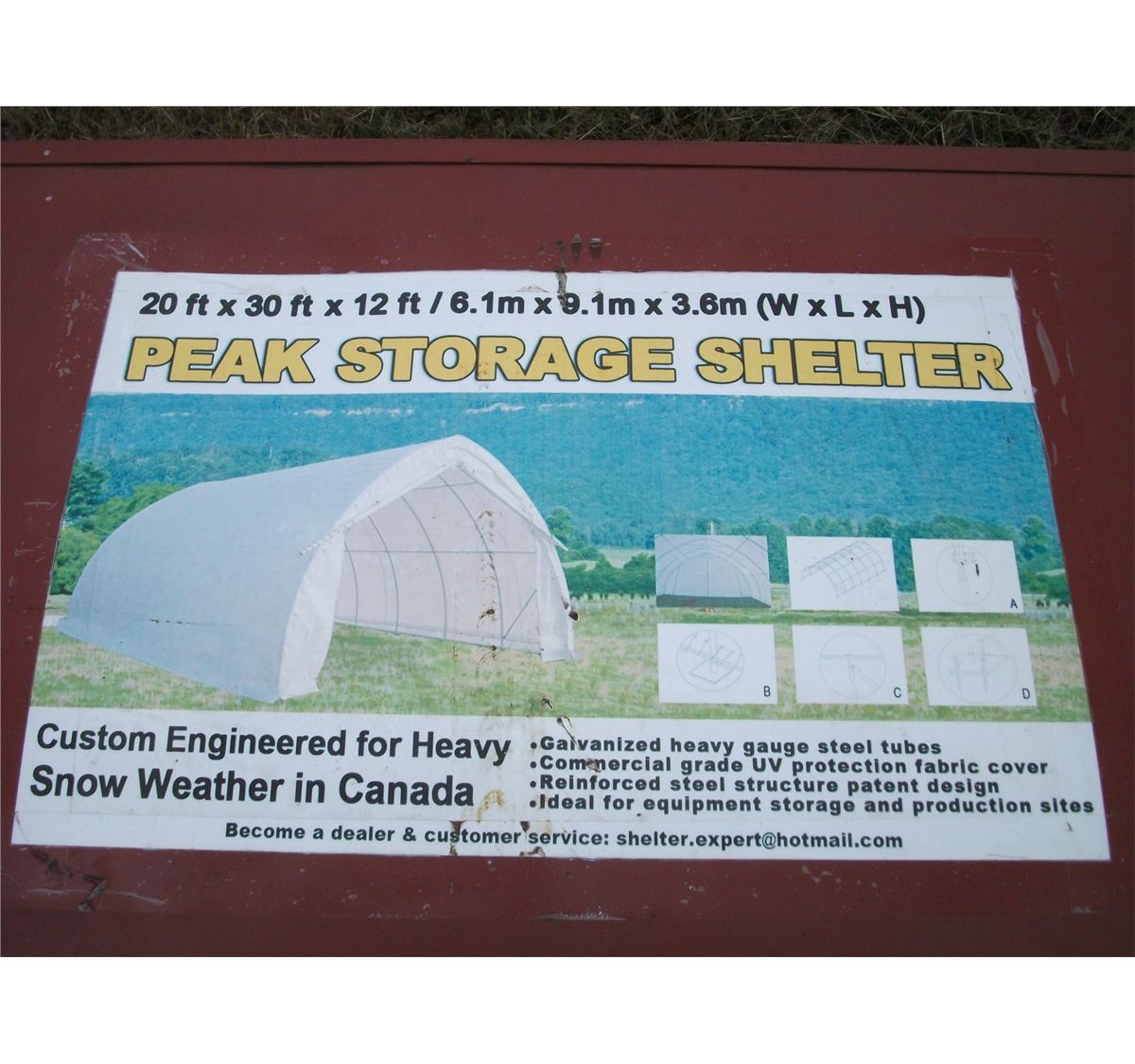 New; 20' x 30' x 12'; galvanized gauge steel tubes; commercial grade UV protection fabric cover; reinforced steel structure