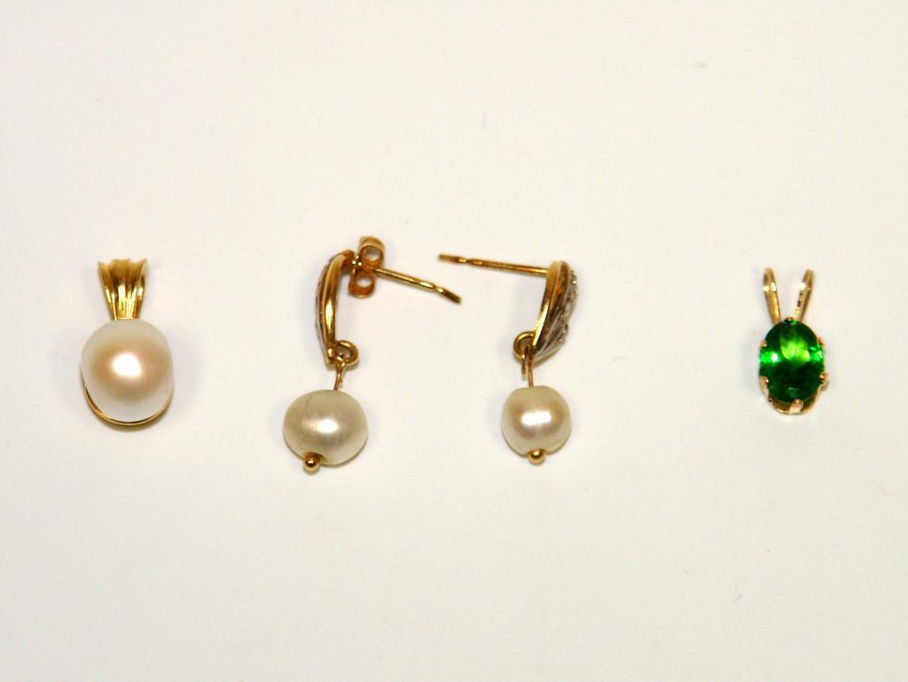 Pearl Pendant, Pearl Earrings & Green Stone Pendan