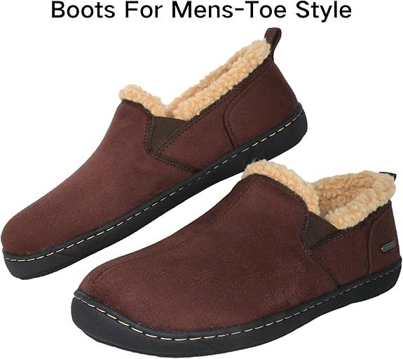 - PEDOQU Men's Slippers Boots Slippers for Men Warm House Slippers Comfy Memory Foam Loafer Shoes with Wool Blend Lining & Elastic Gores for Indoor Outdoor Winter