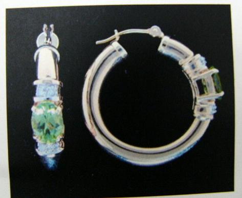 Peridot and Diamond Hoop Earrings, 14 K yellow gold- Peridot are oval, faceted, approx. 1.00 carats, transparent, and olive green; diamonds are single cut, approx. 0.08 carats, I1 clarity, and H-I color- estimated retail replacement cost $1,025 (12)