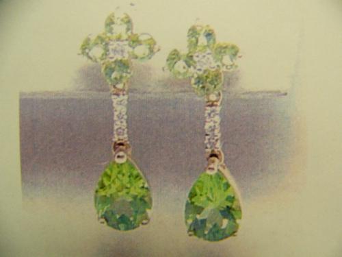 Peridot and diamond earrings 14 K yellow gold- peridot are pear and round, faceted approx. 2.50 carats; diamonds are full cut approx. 0.12 carats- estimated replacement cost $1,675 (12)