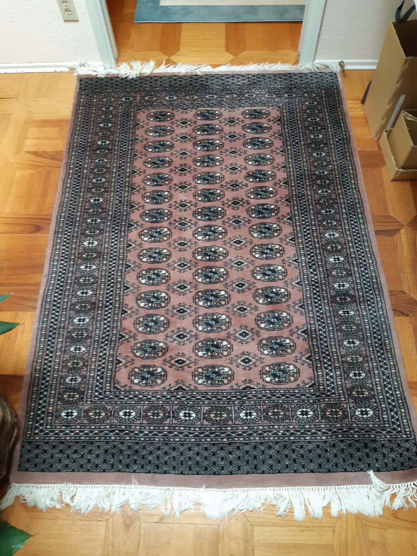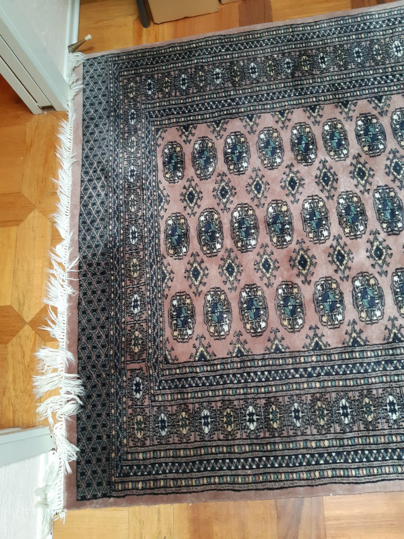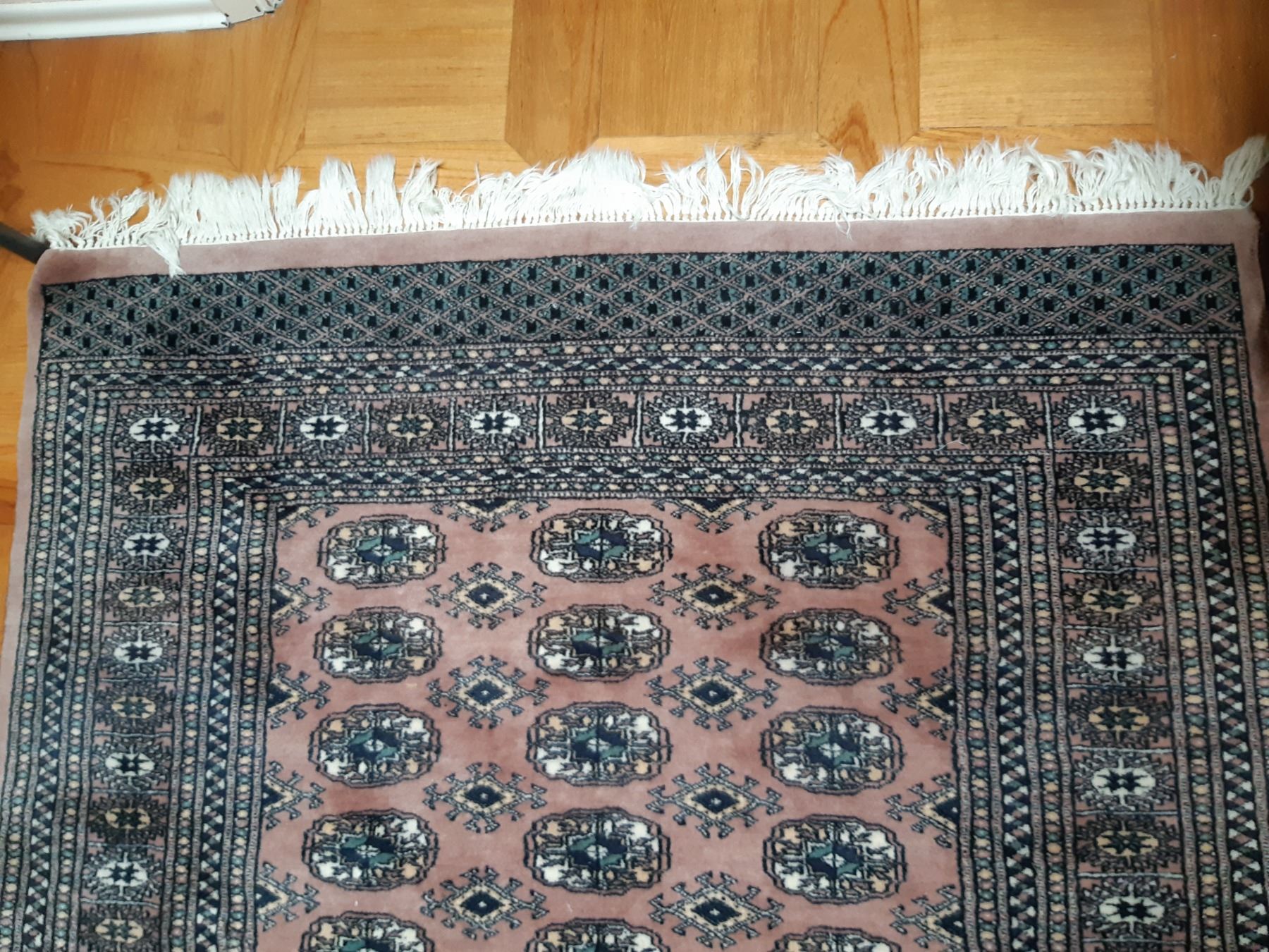 Persian Rug in Gray, blue and rose colours. 72x51. Pickup at 12:30 pm