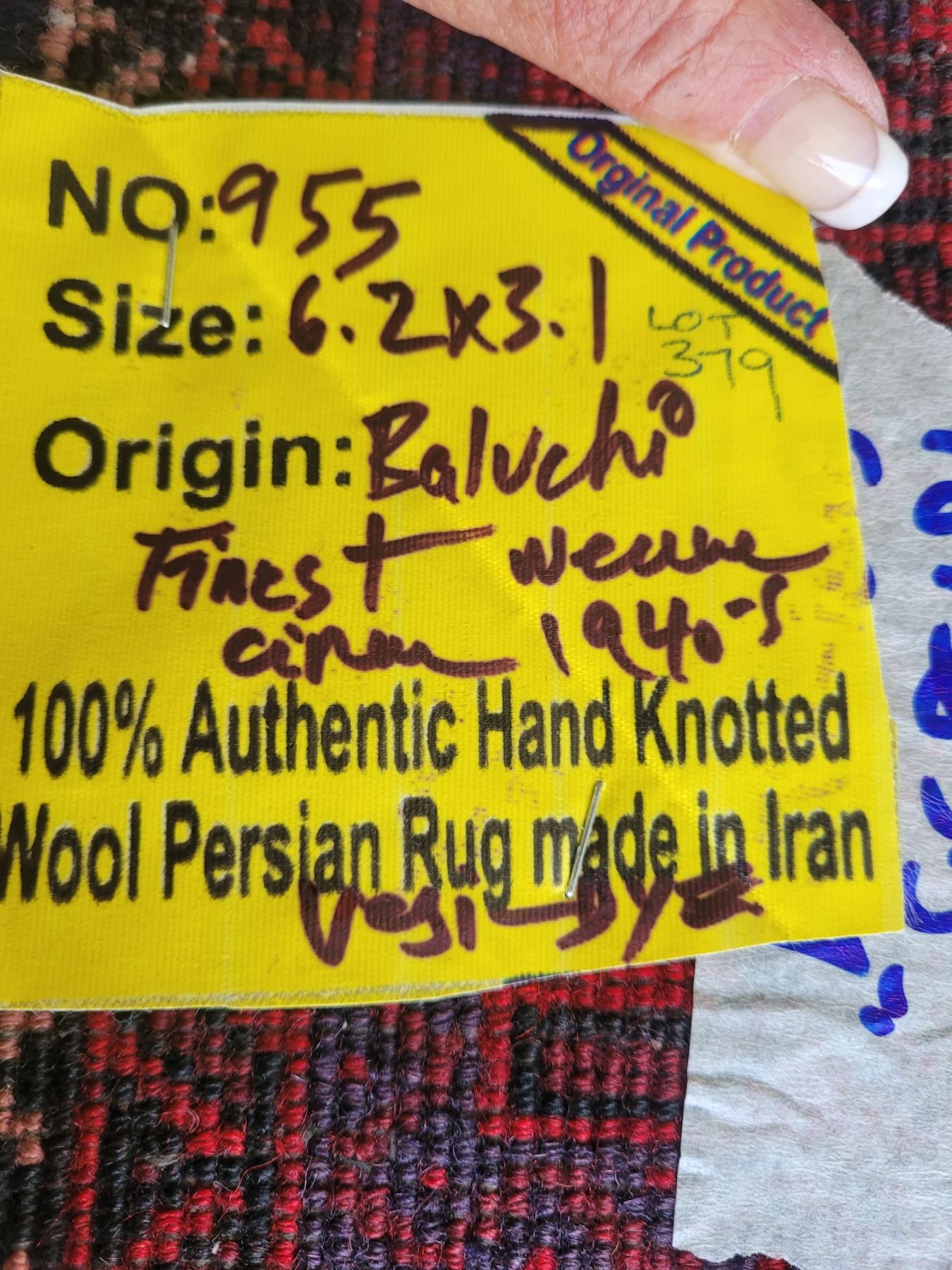 6'2" x 3' fine weave c1940's -50's hand knotted wool rug. Pickup at 11 am