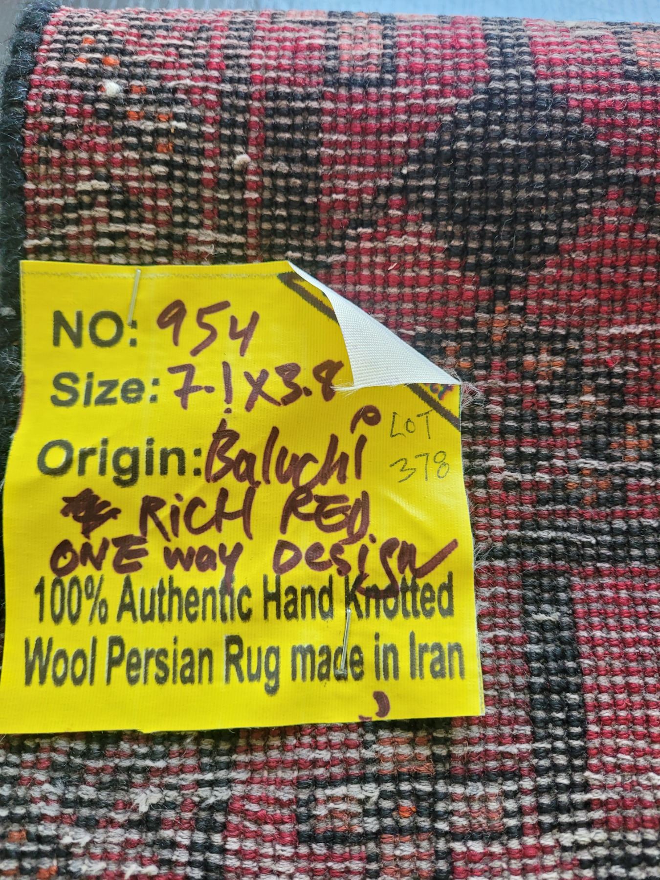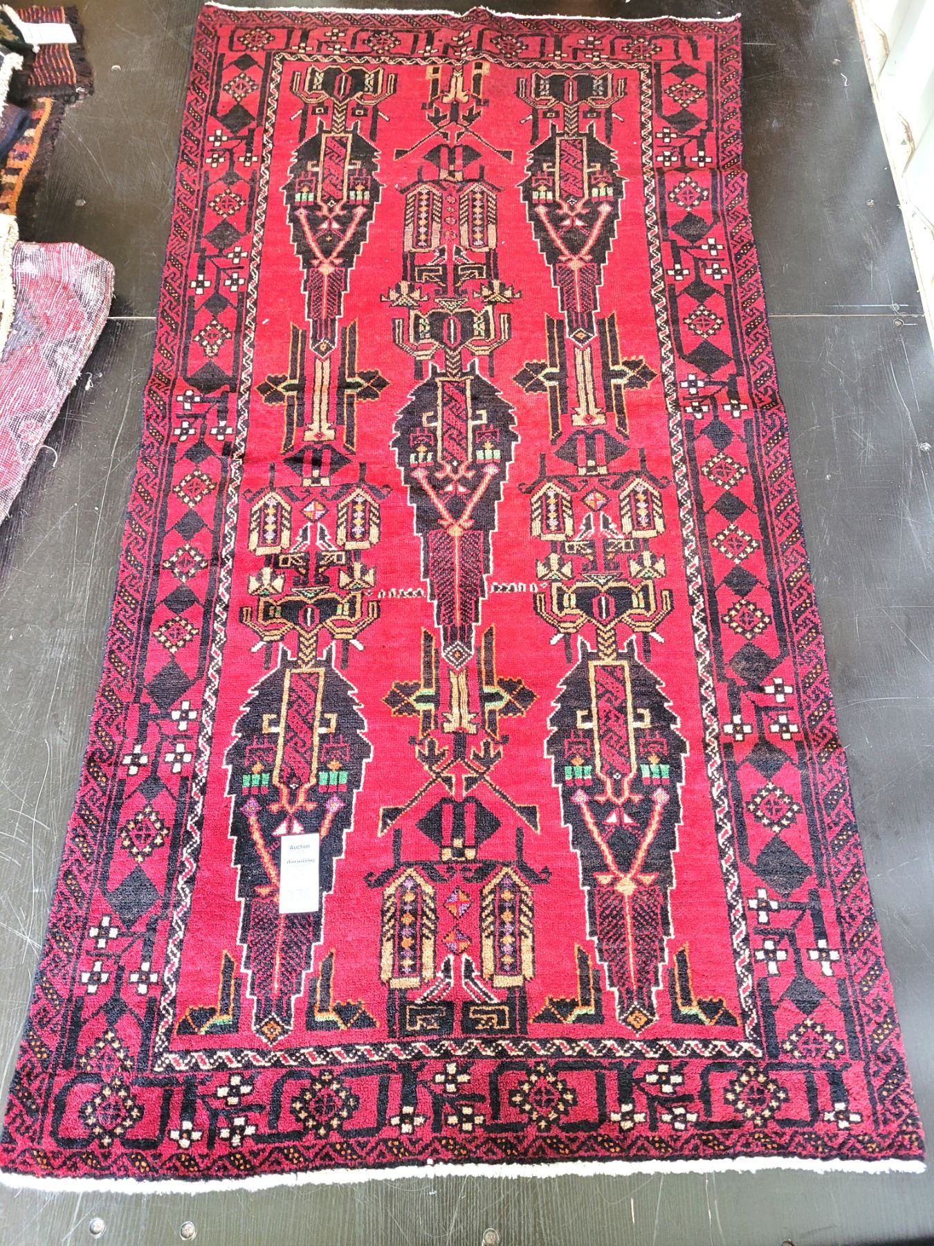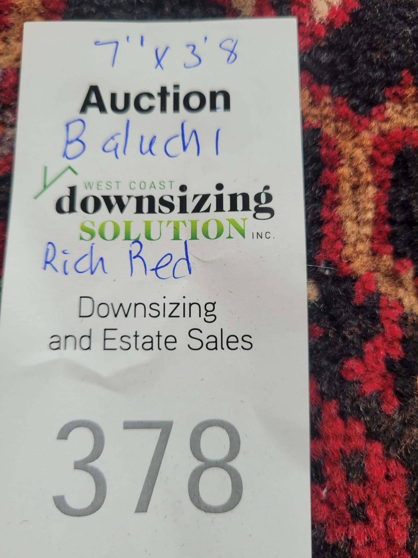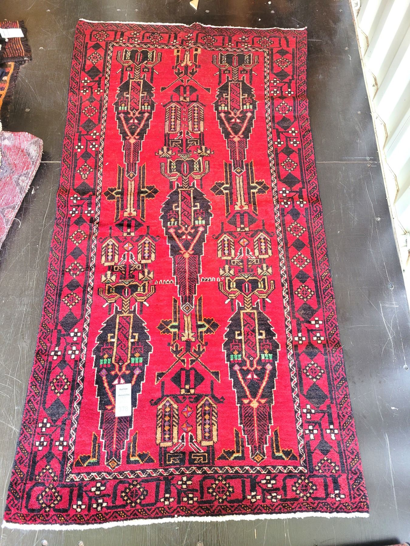 7' x 3'8" Hand knotted wool rug. Pickup at 11 am