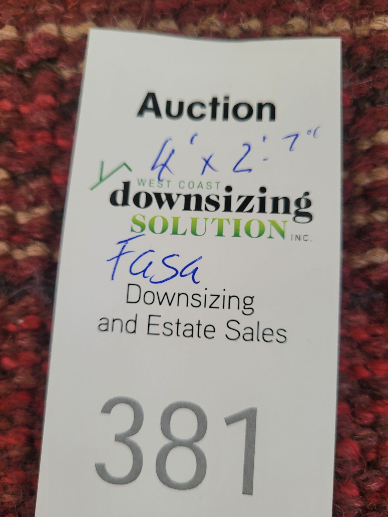 4'x2'.7" hand knotted wool rug. Pickup at 11 am