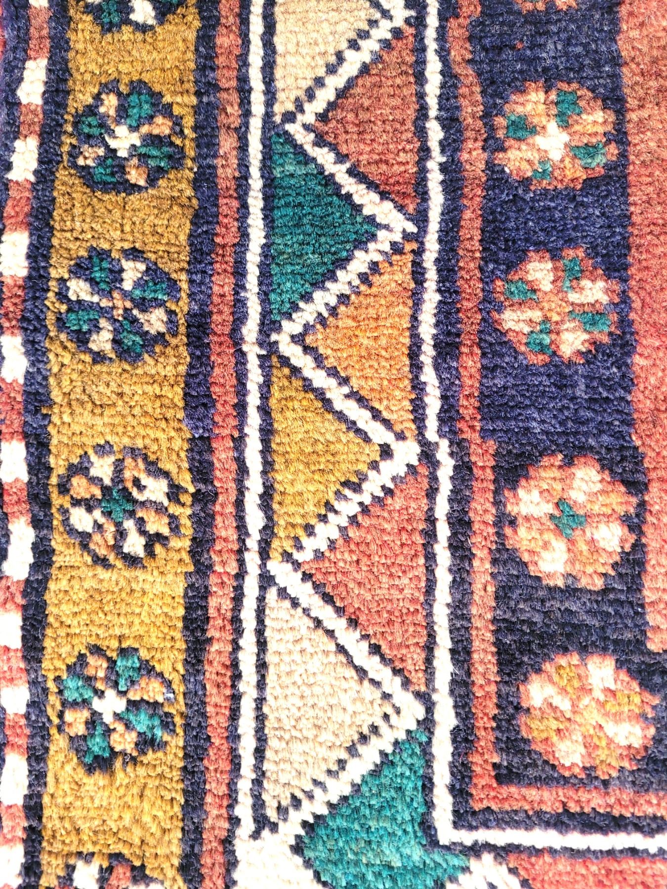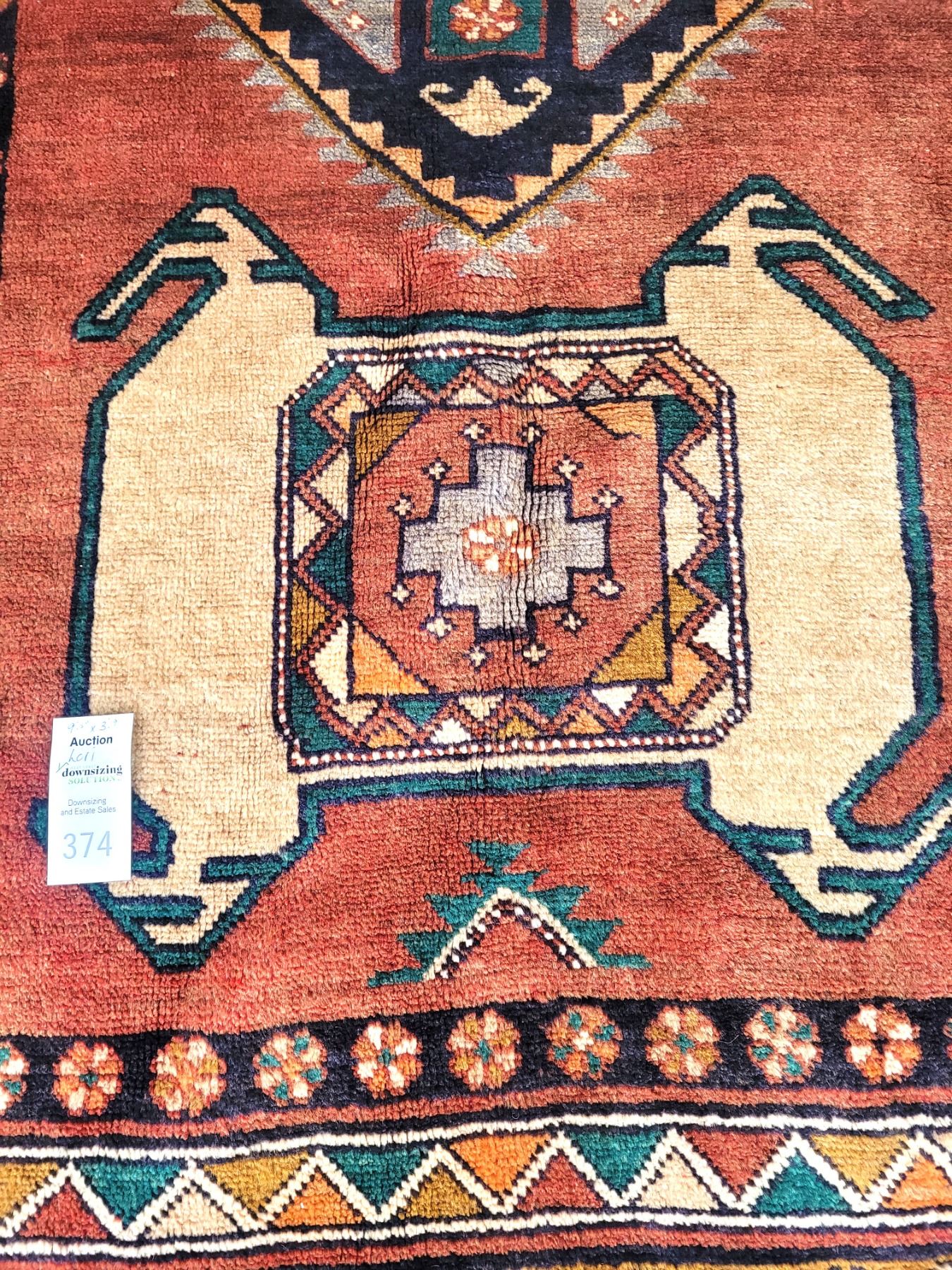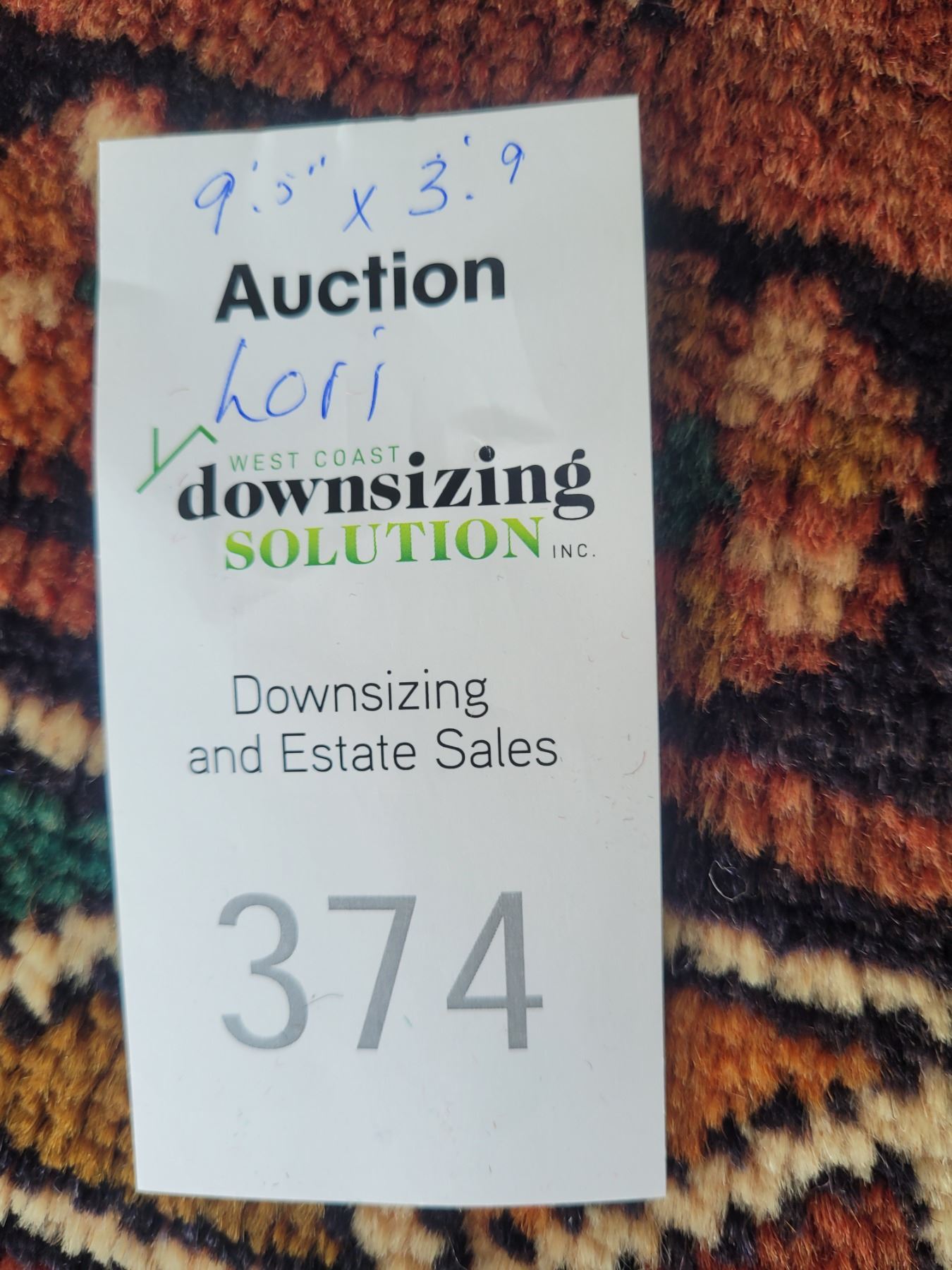 9'5' x 3'9" c 1950's veg dye. Hand knotted wool rug. Pickup at 11 am