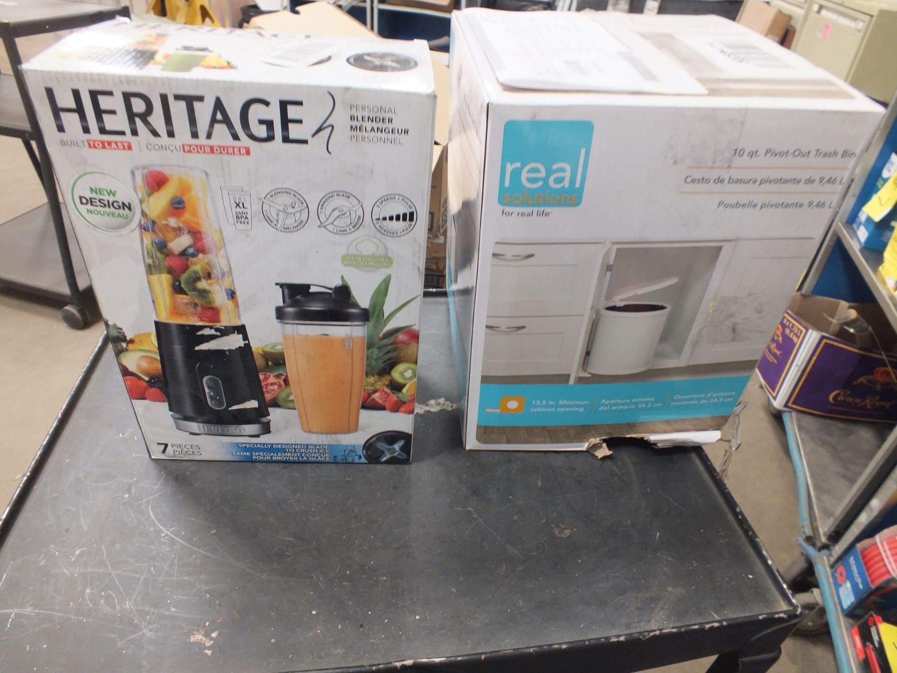Personal Blender & Pivot Out Trash Can, you get both for one money, new in the box...freight claim...
