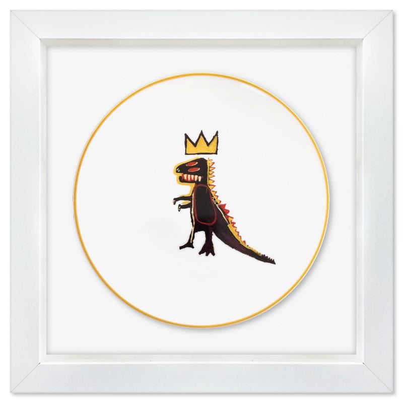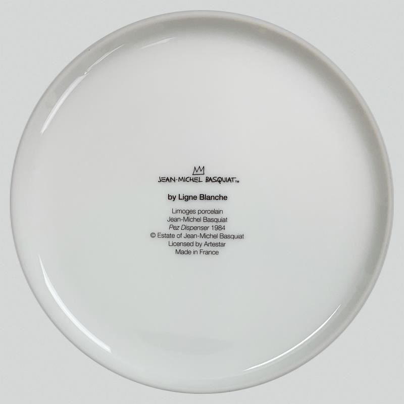 "Pez Dispenser 1984" is a Limoges porcelain plate bearing the plate signature inverso of Jean-Michel Basquiat (1960-1988). This plate is custom framed and floated on linen. Measures approx. 16" x 16" (frame), 11" (plate diameter). This item requires special handling and may have a longer than usual turnaround.