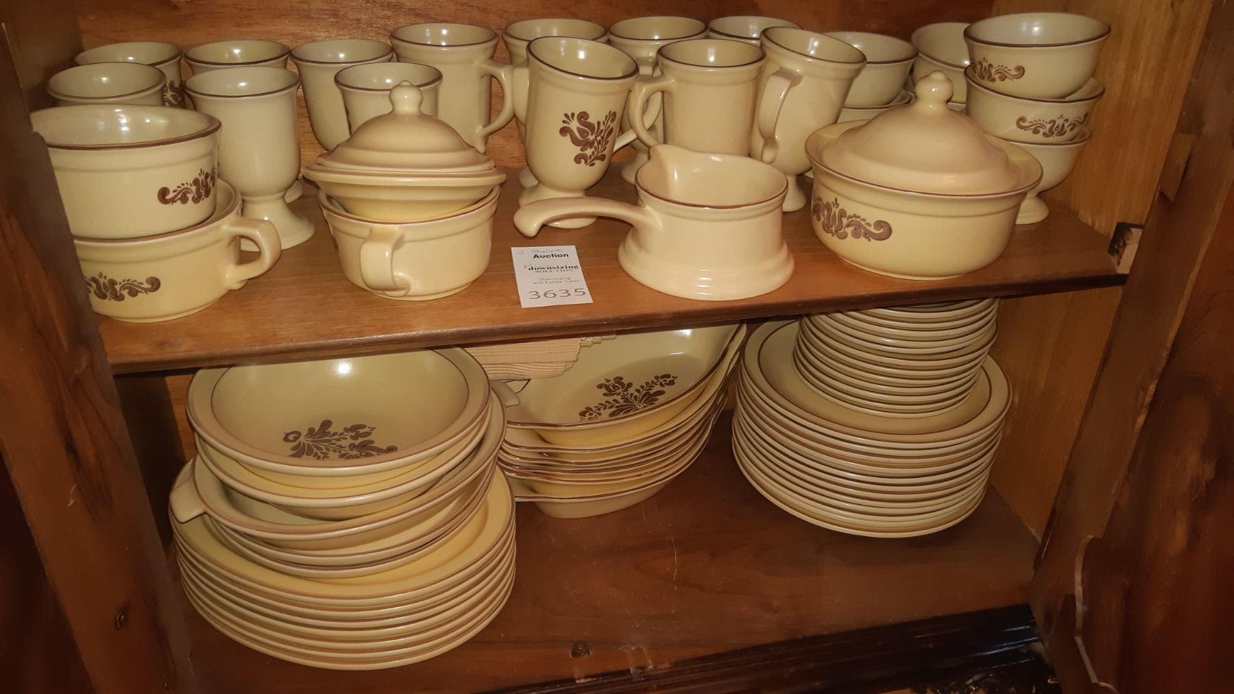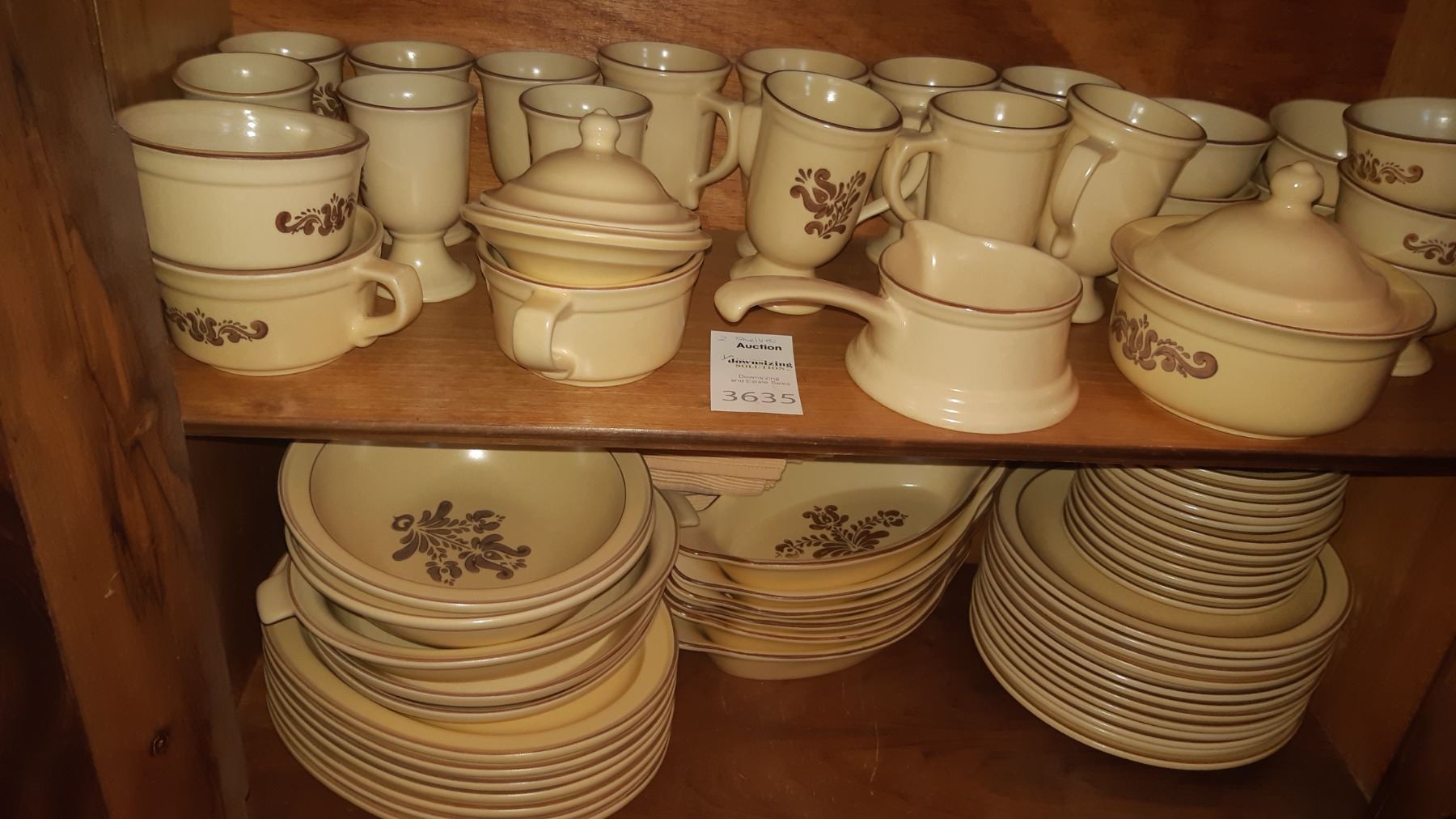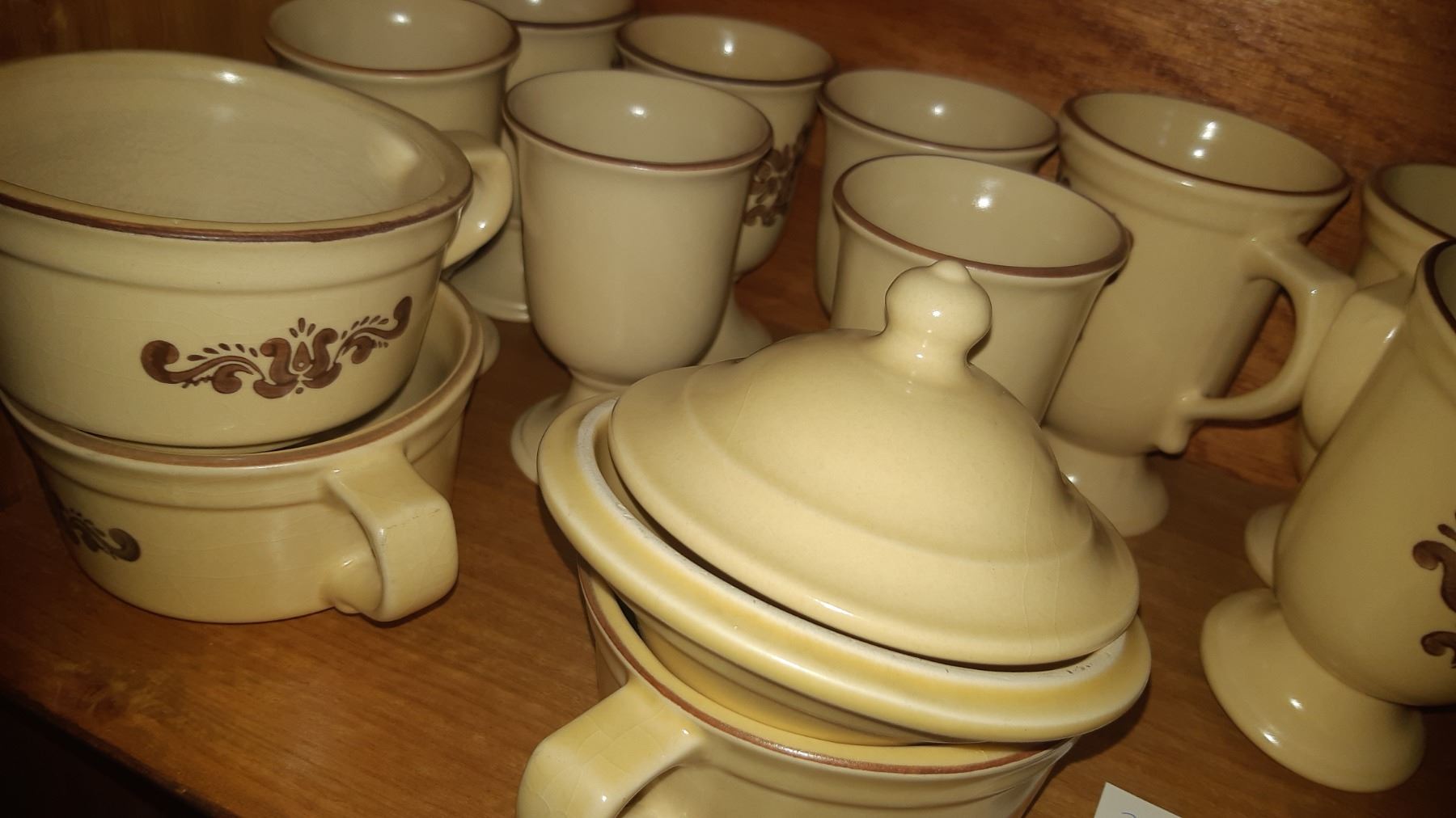 Collection includes 5 au gratin, 12 dinner plates, 12 side plates, 14 mugs, variety of serving dishes, gravy boat, more. Bring packing material. Pick up 9-10