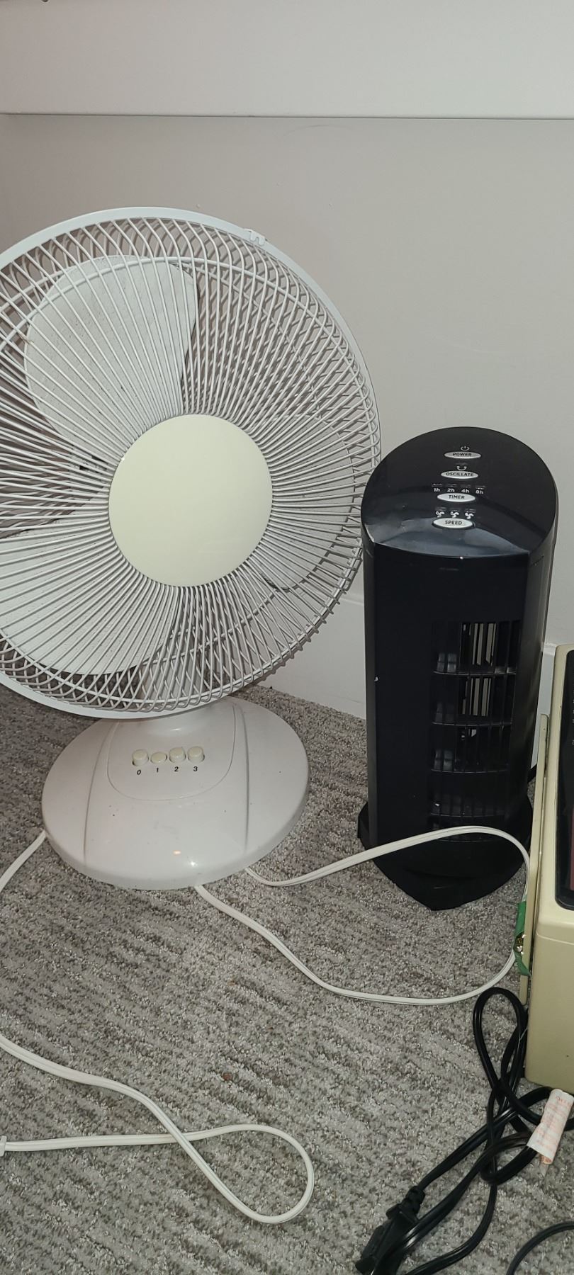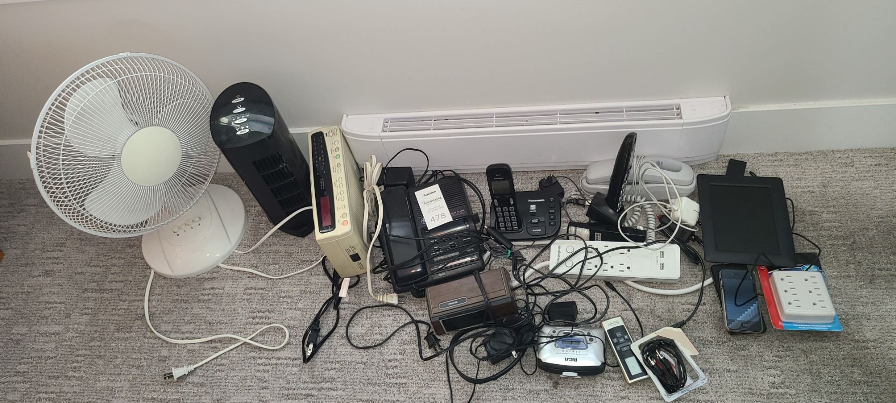 Two electric fans, phones, Kichenmate clock radio system, more. Pick up 9-10