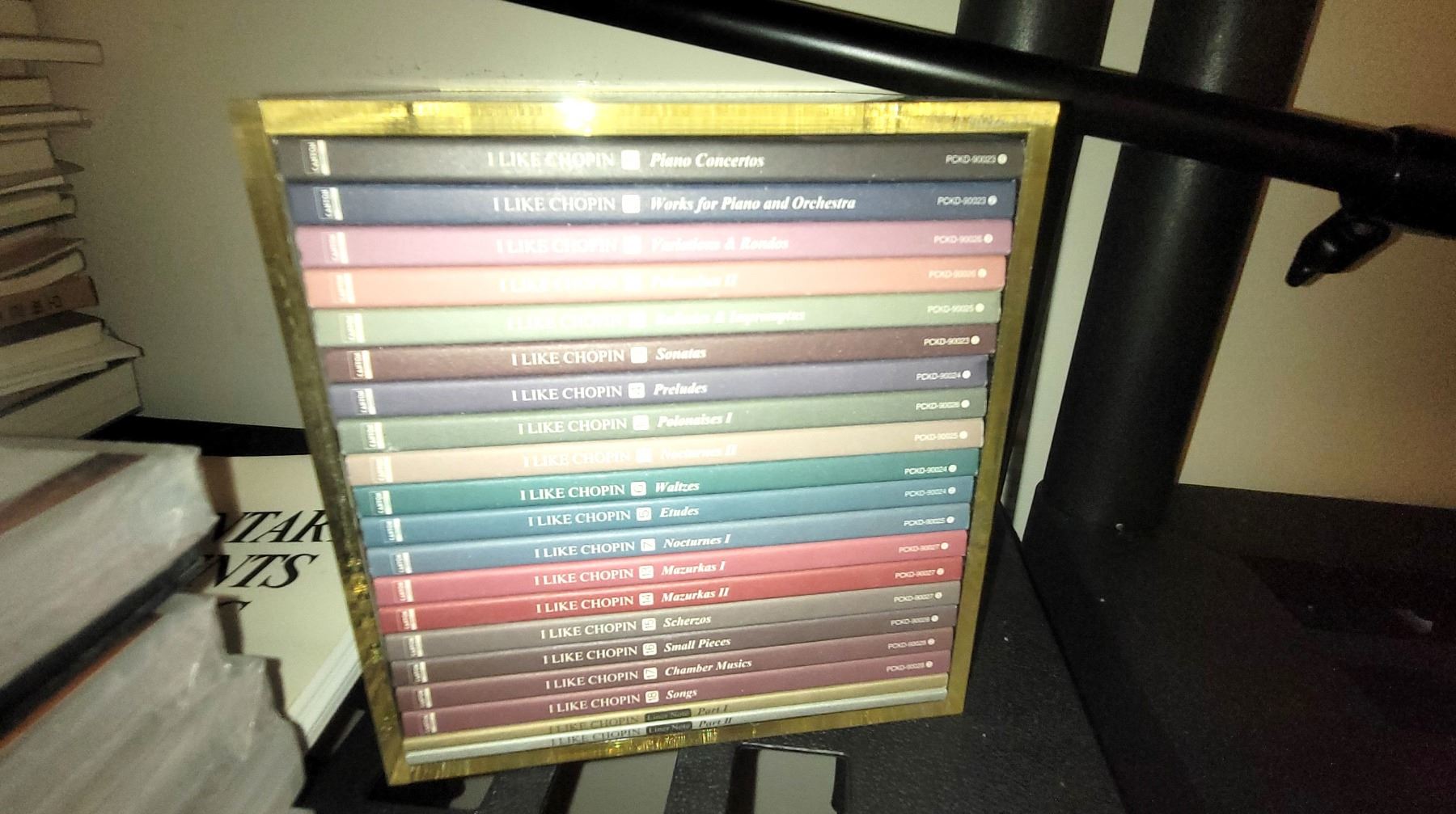 Piano classical music study sheets and New upopened, Chopin Companion works CDs, Guitar Stand . Pickup at 9 am