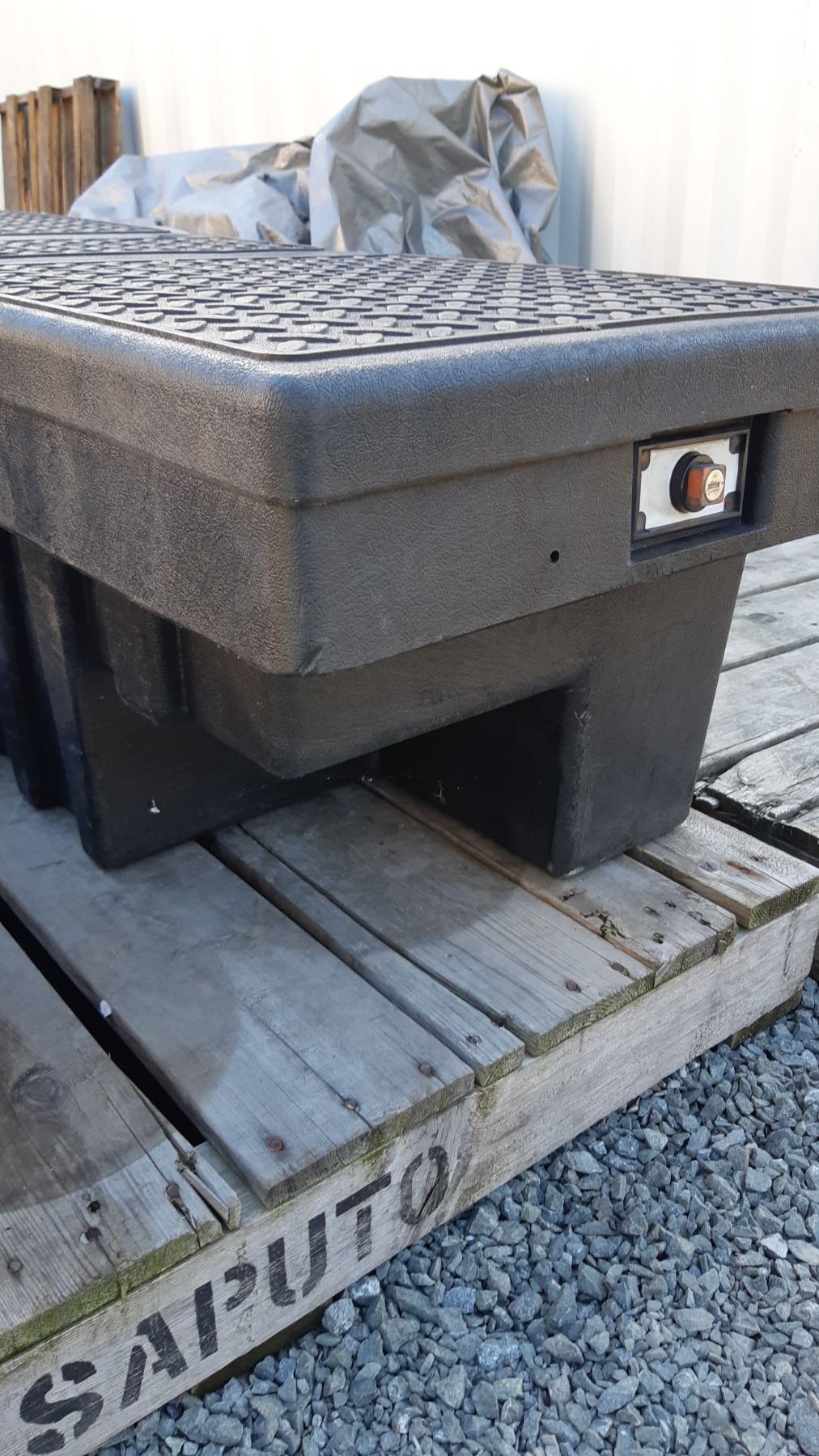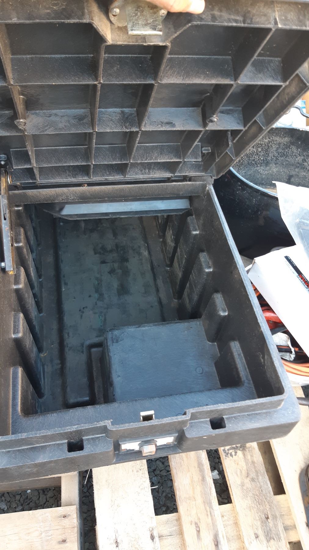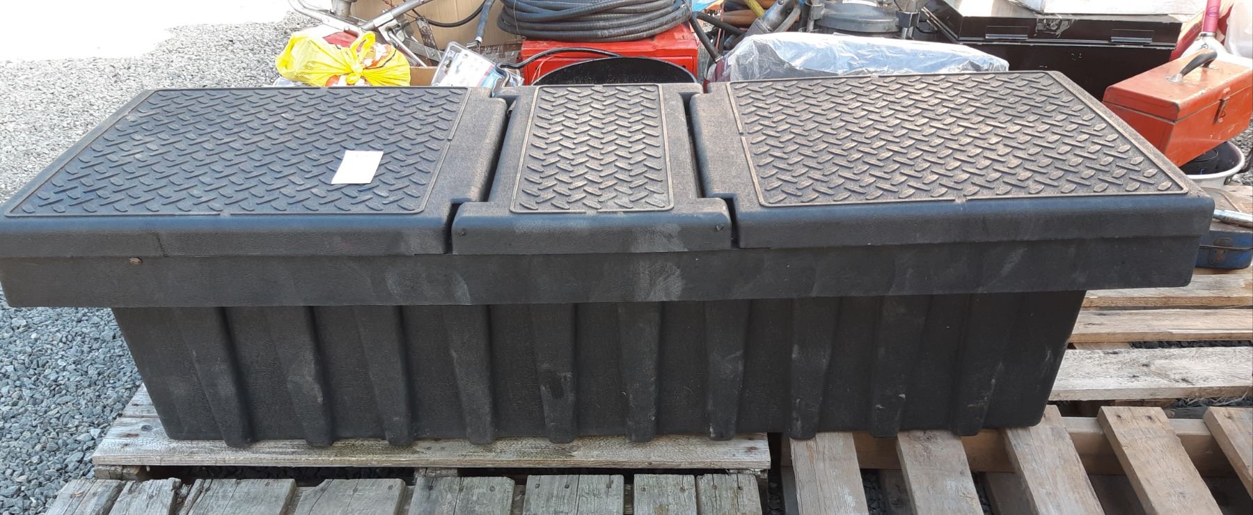 Hard plastic truck tool box 61x21x16 no keys. Pickup at 11 am
