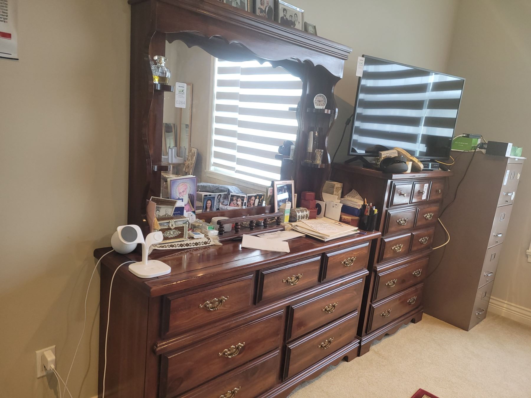 Pine dresser 58x17x32 and mirror 48x6x39. Contents not included. Two pieces, bring help to carry out, stairs. Pick up 11-12