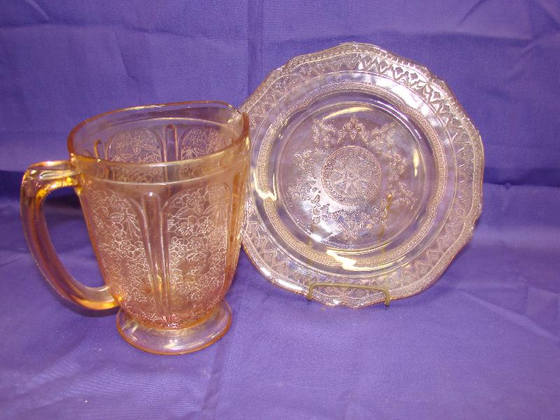 2 Pieces of pink depression glassware: Pitcher & Plate