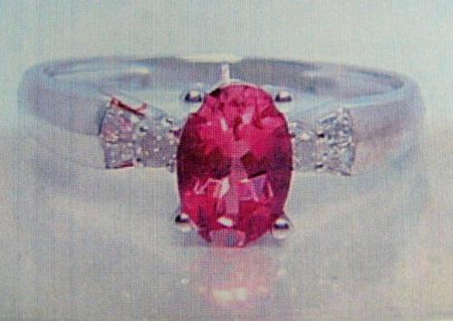 Pink Sapphire and Diamond Lady's Ring 14 K white gold- pink sapphire is oval, faceted approx. 1.00 carats, transparent and pink; diamonds are full and baguette cut approx. 0.10 carats- estimated retail replacement cost $1,590 (12)