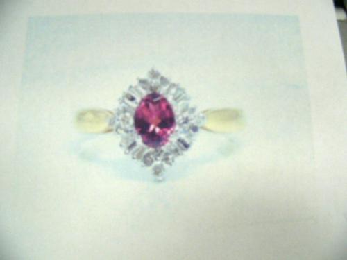 Pink Tourmaline and diamond lady's ring, 14K yellow gold, pink tourmaline: oval, faceted, approx. .50 carats, transparent pink, diamonds, full cut, approx. .25 carats, clarity SI1-I2, color G-H, estimated retail cost $1250 (12)