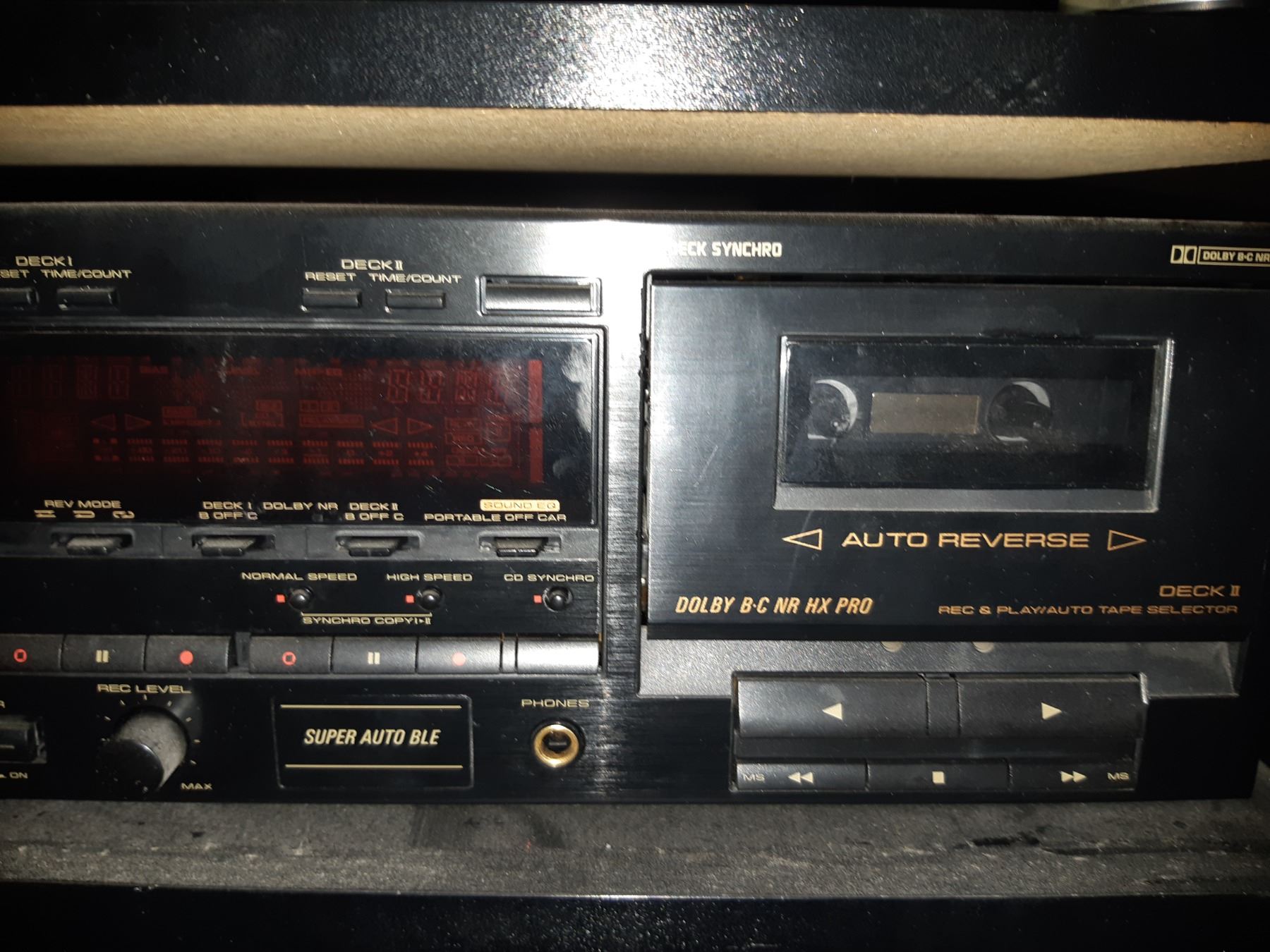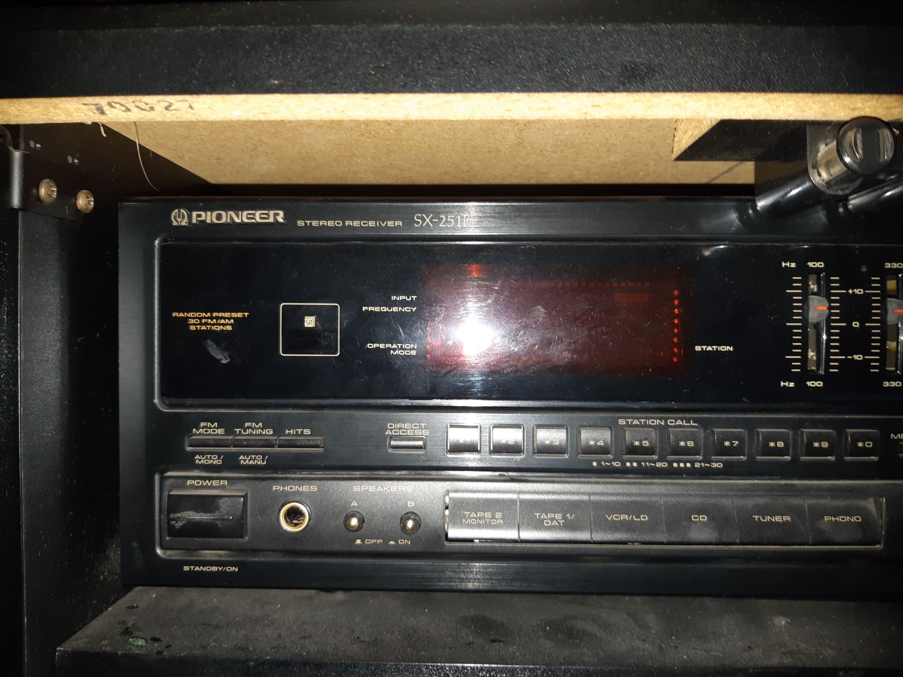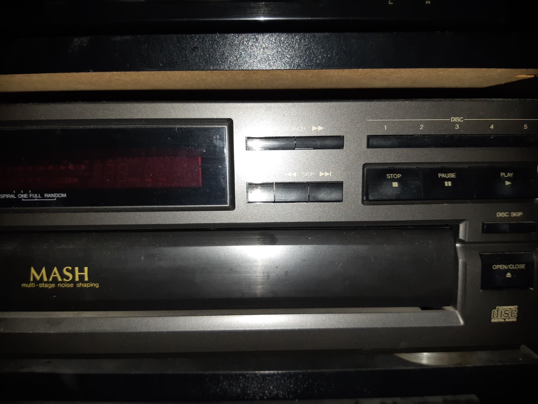Lot includes Pioneer receiver SX25IR, Technics disk changer SLPD827, Pioneer double cassette CTW70IR, Dual turntable, 2 speakers, and stand 20x17x30.Untested. Bring help to move. Pickup at 11 am.