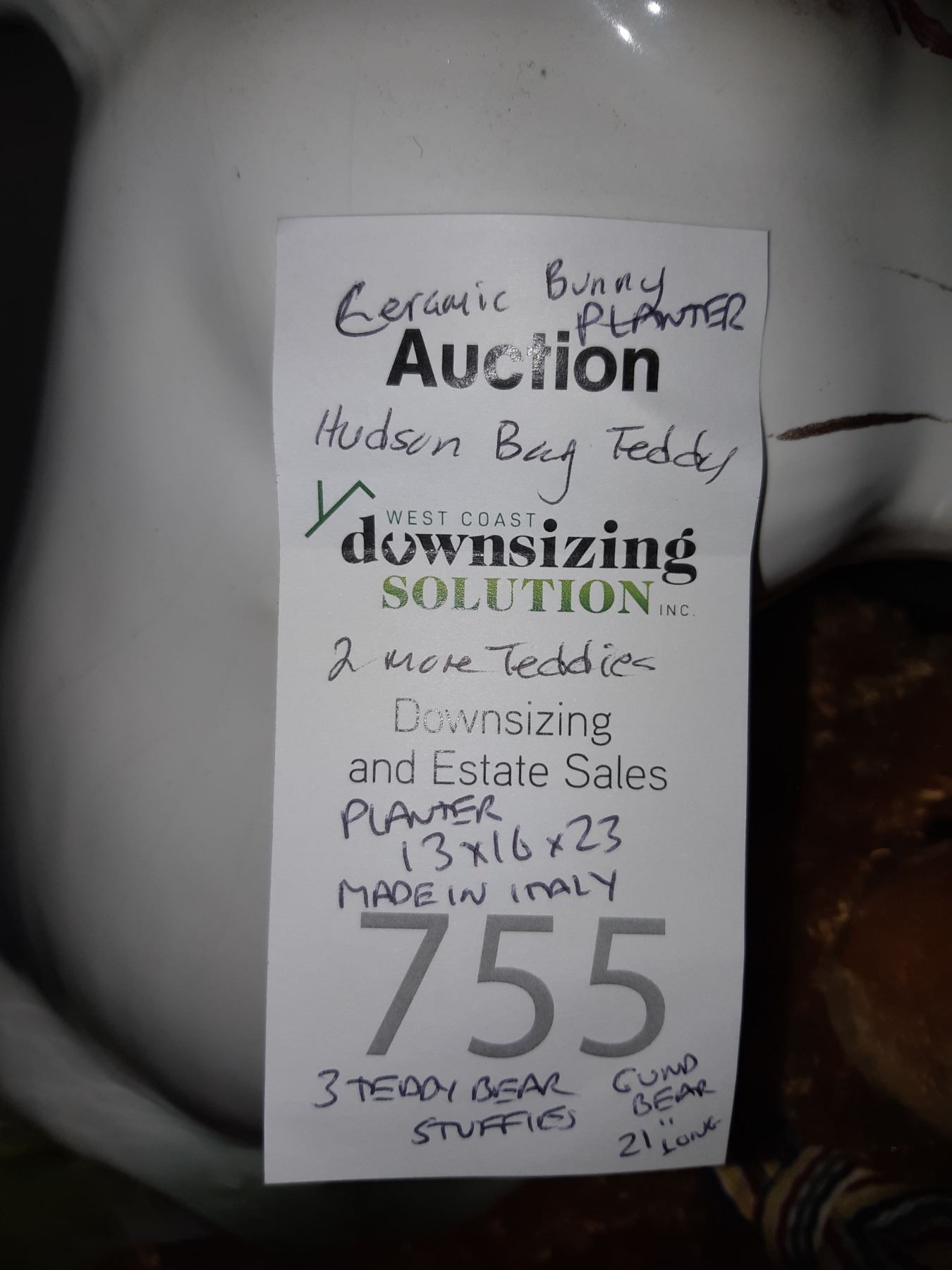 Planter made n Italy, 13x6x23, Gund bear 21 long, Hudson Bay teddy, and others, pickup