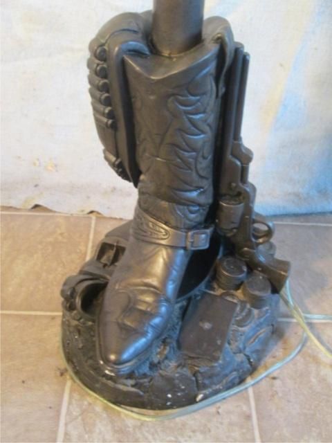 Back of Boot. (six shooter, boot, poker chips and playing cards on boot)