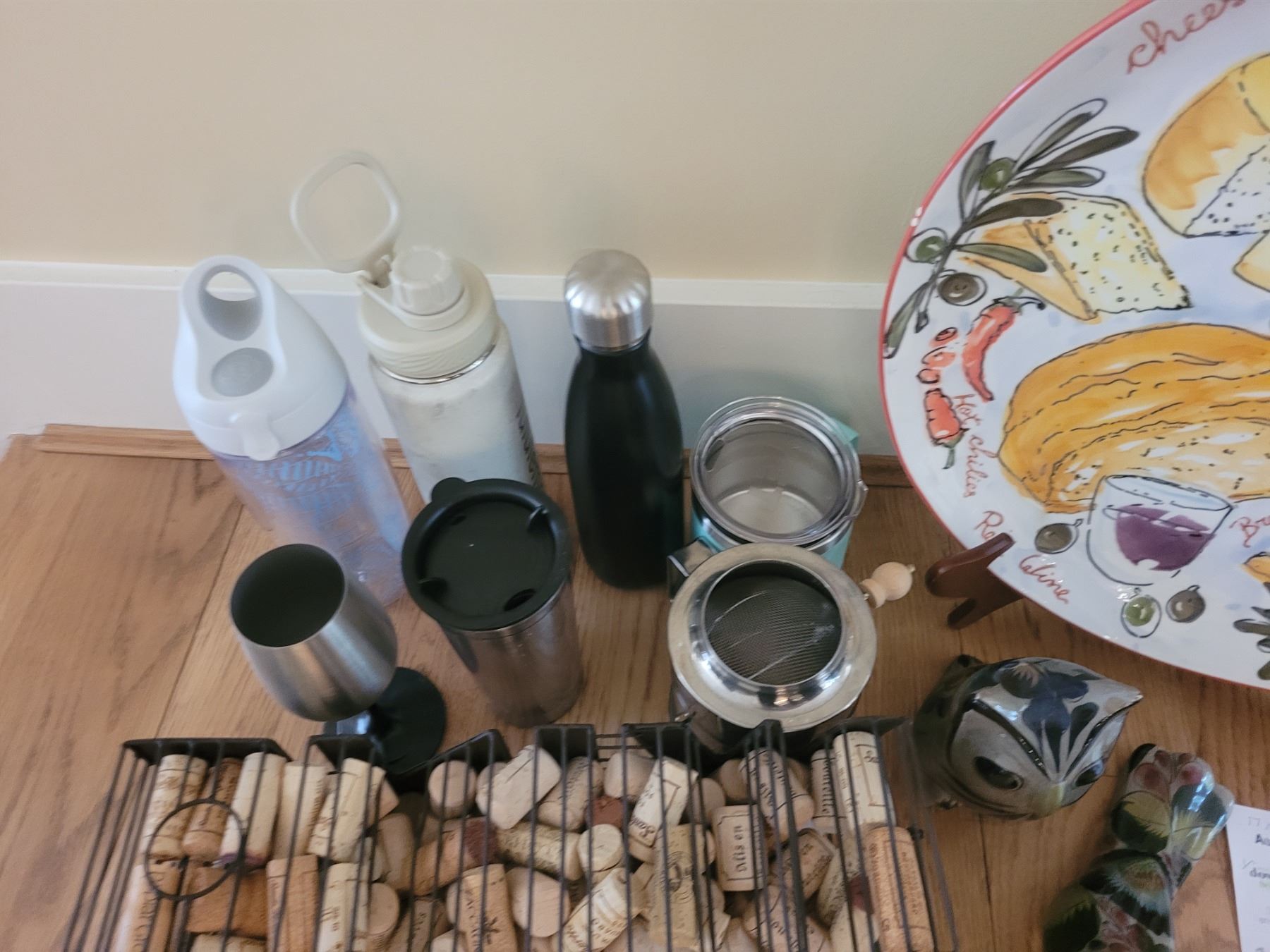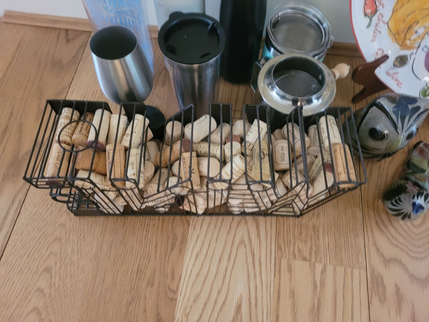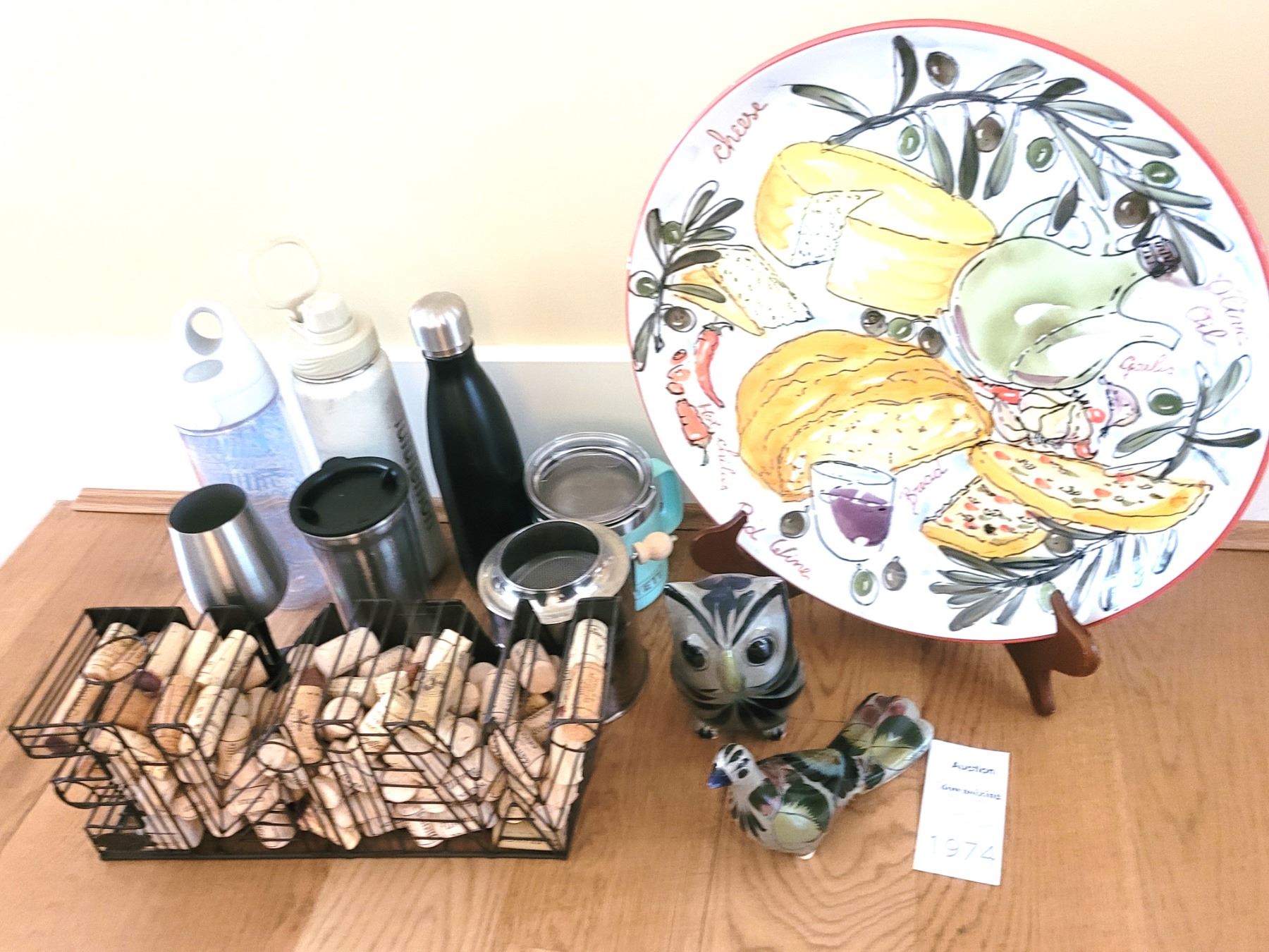 Provence plate, water bottles, corks, stone decor. Pick up 9-10