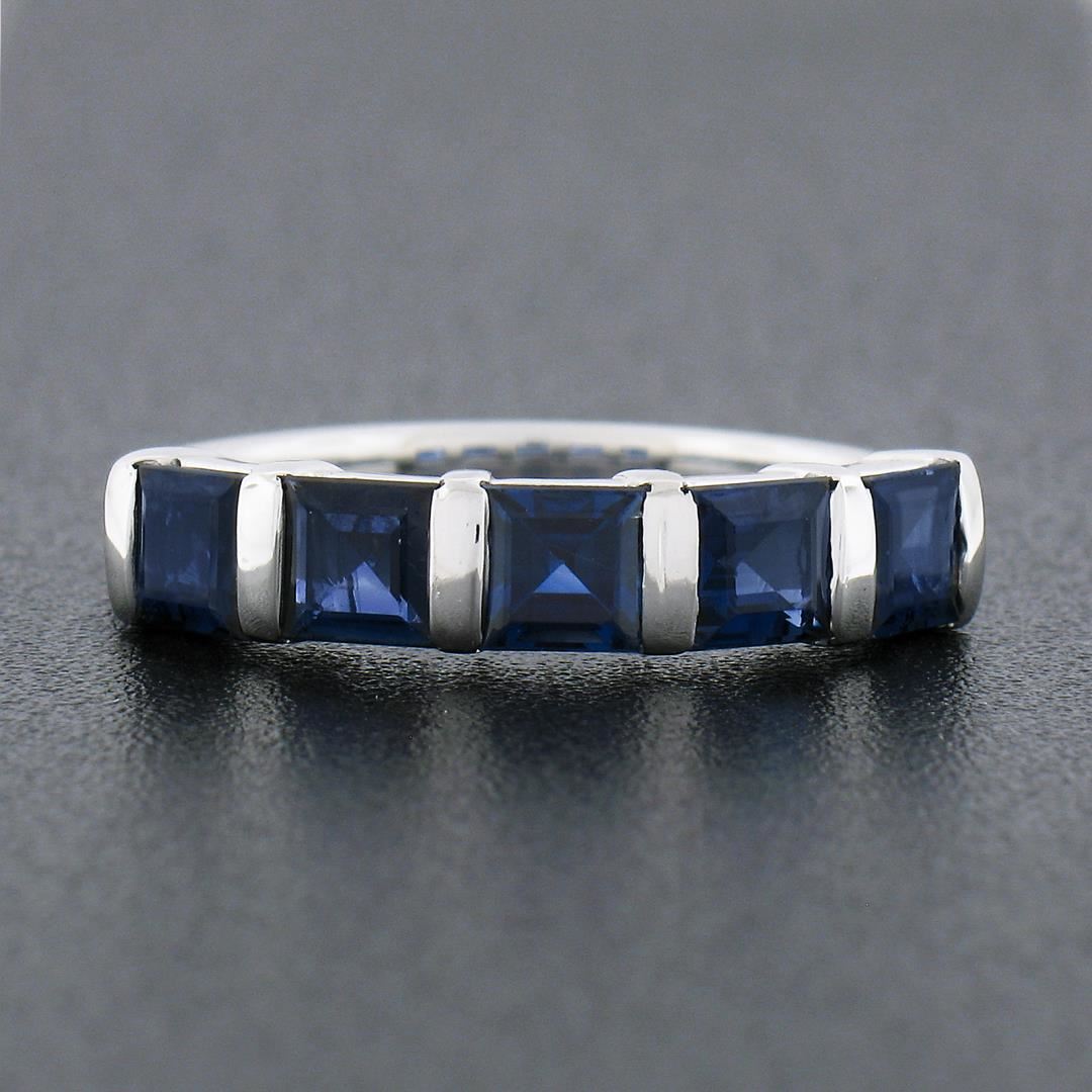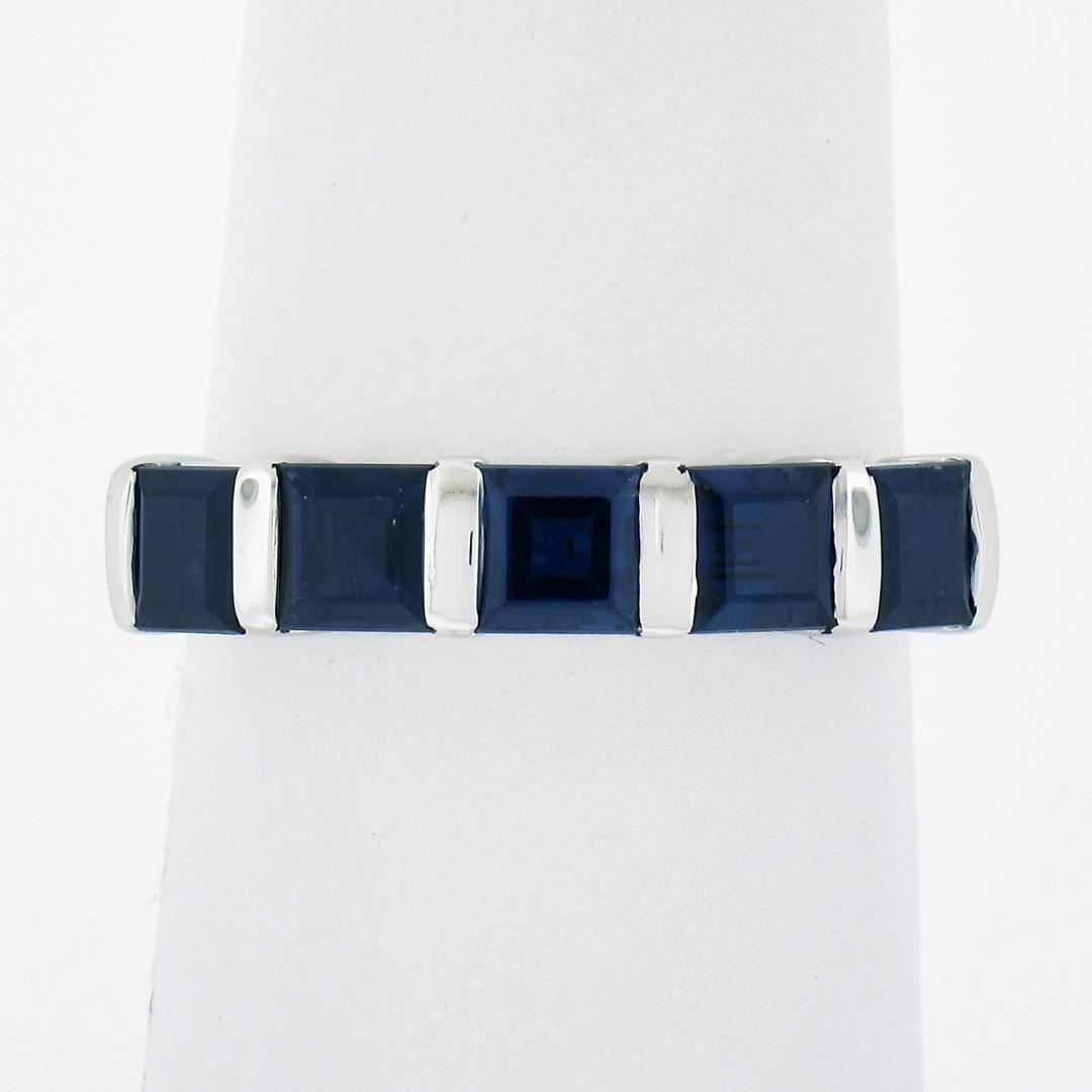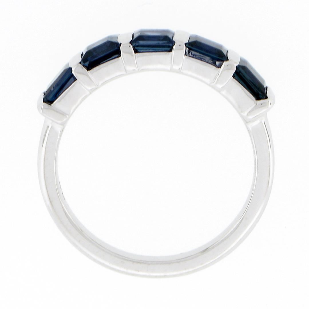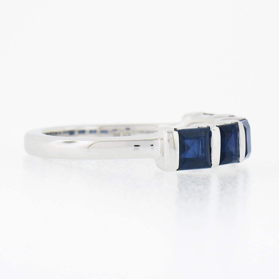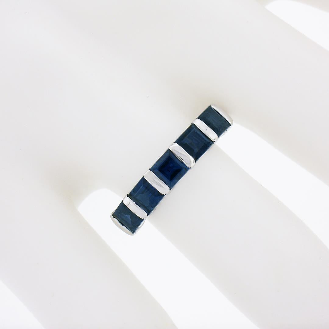Platinum 1.75 ctw Square Step Cut Blue Sapphire Bar Channel Set 5 Stone Band Rin