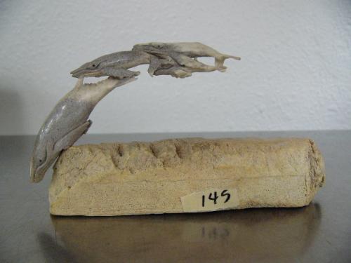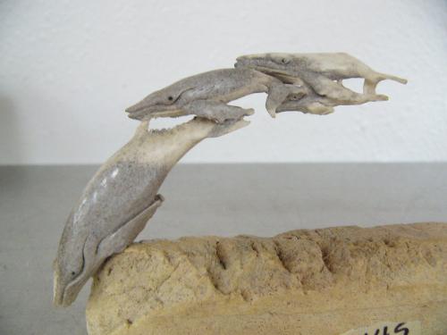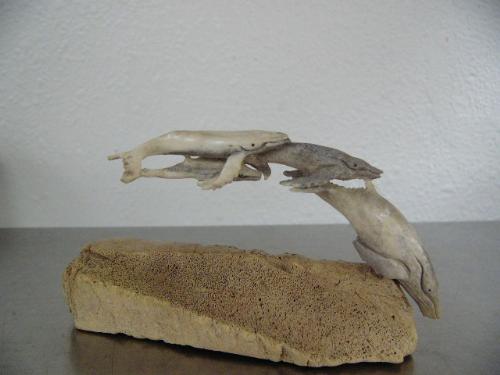 Pod of 4 whales carved out of antler and mounted on bone- imported, not Alaskan ()