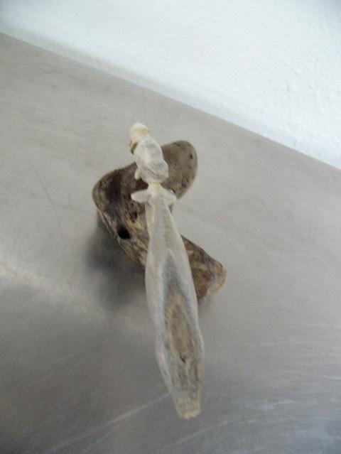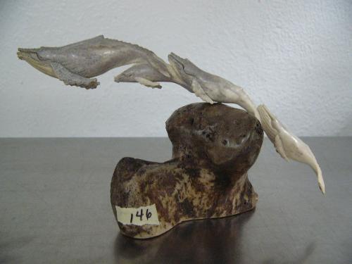 Pod of 4 whales carved out of antler mounted on bone- imported, not Alaskan ()
