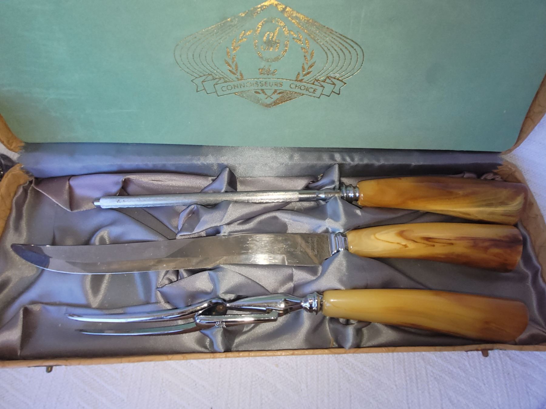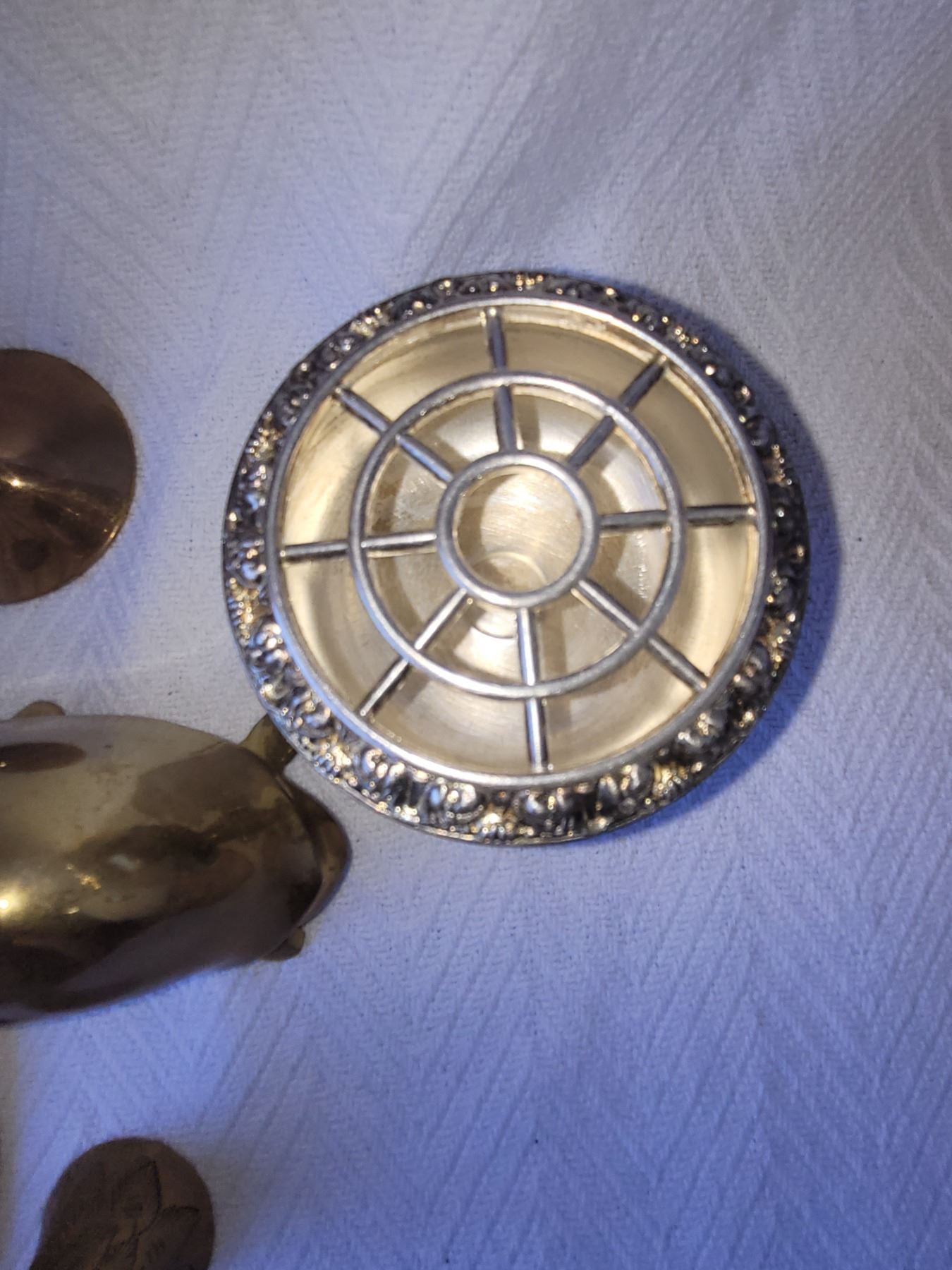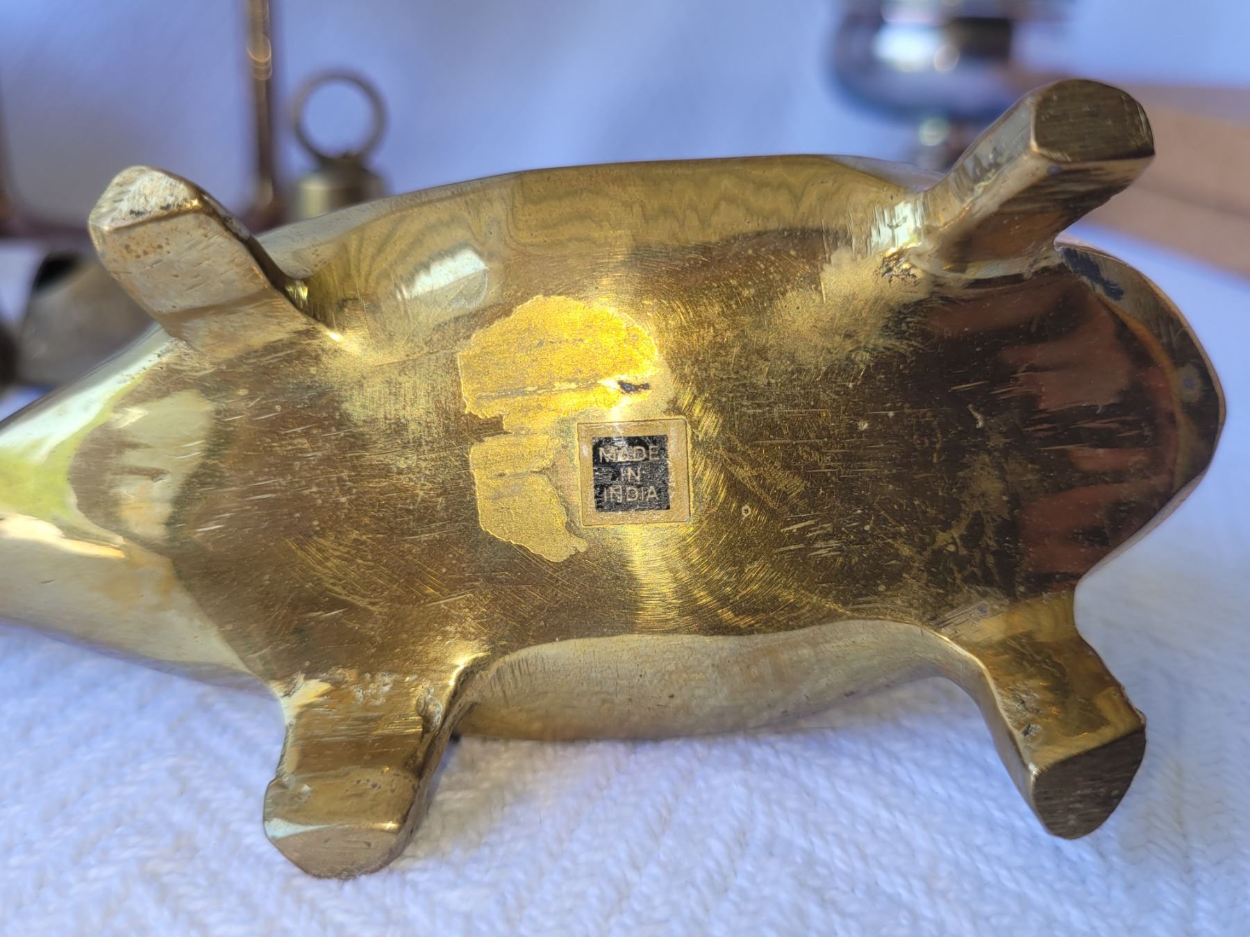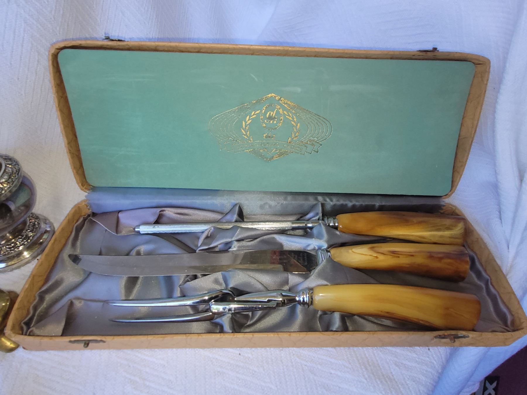 Metal goblets, brass tortoise, Connoiseurs Polished horn handled carving set and more. Pickup at 9 am