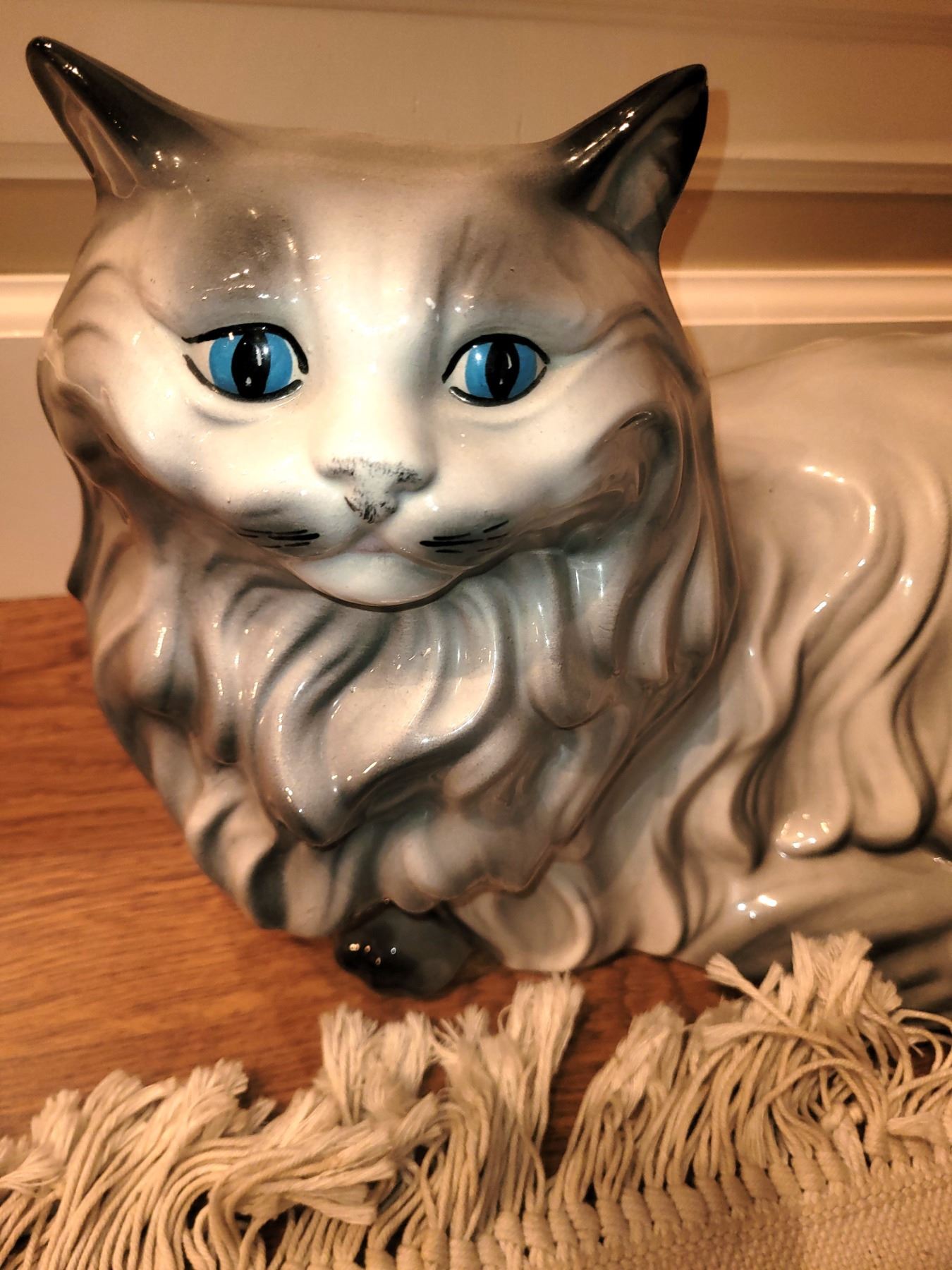 Porcelain 11x 16" long haired cat. Pickup 9-10am.