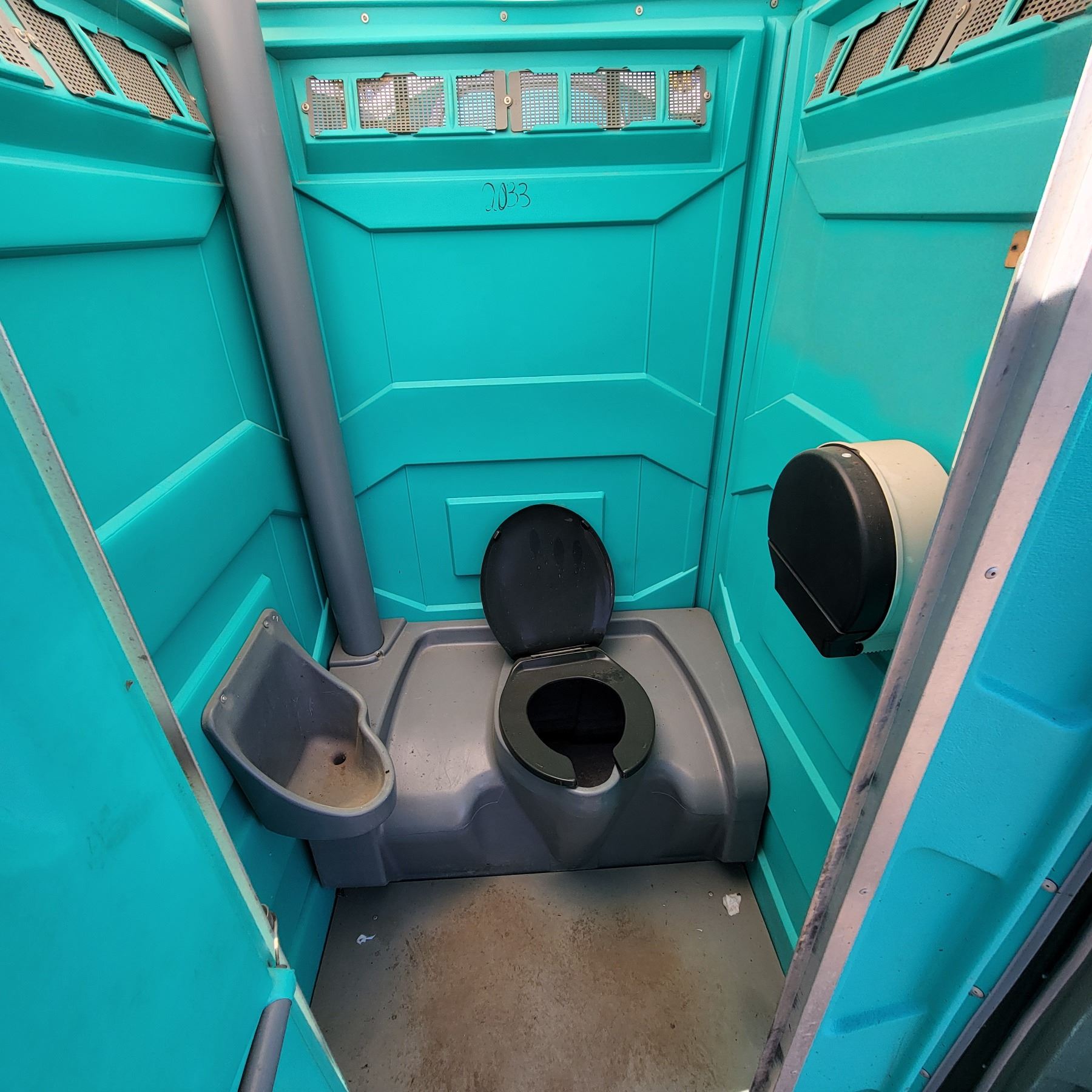 Porta Potty c/w hand sanitizer dispenser, urinal & TP dispenser