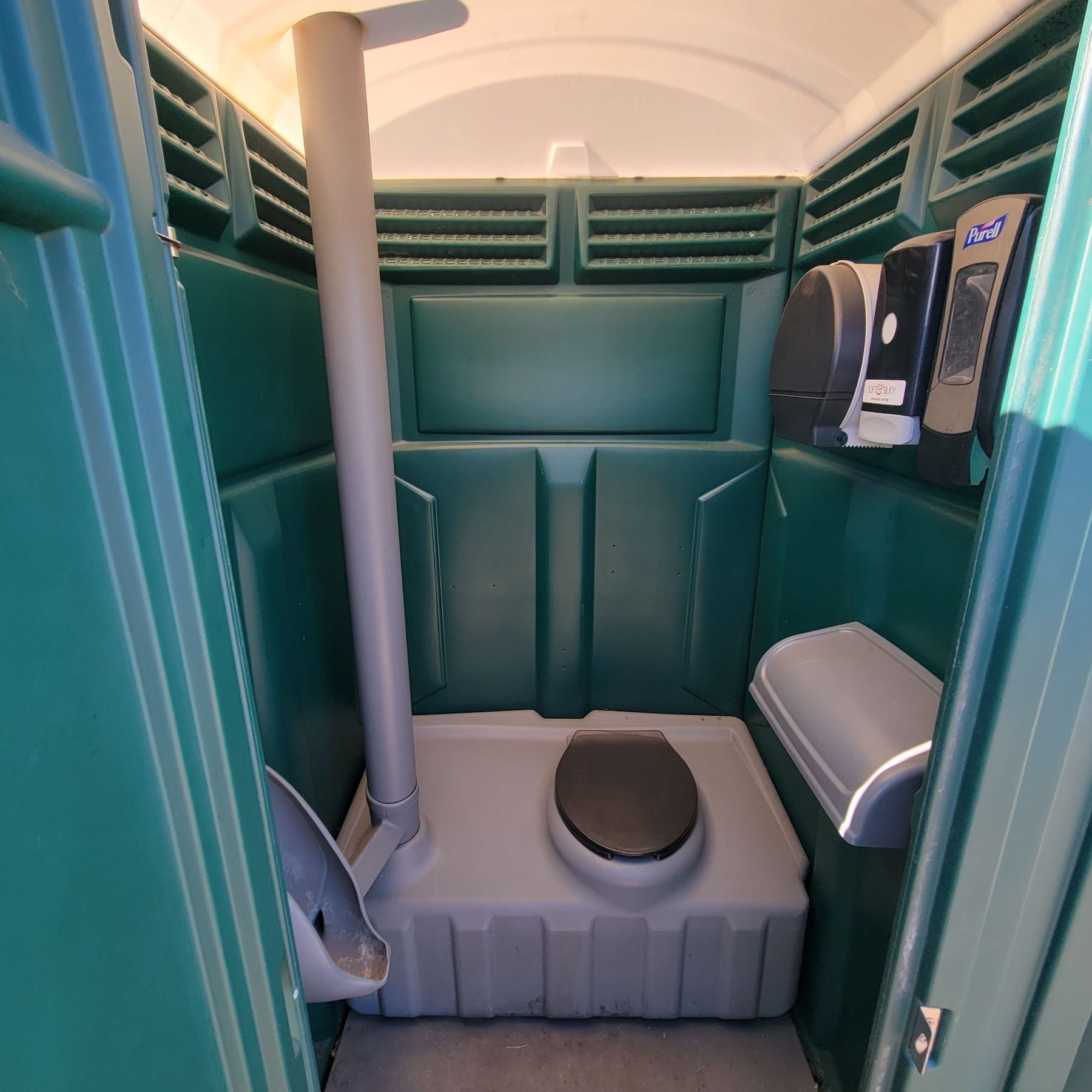 Porta Potty c/w hand sanitizer dispenser, urinal & TP dispenser