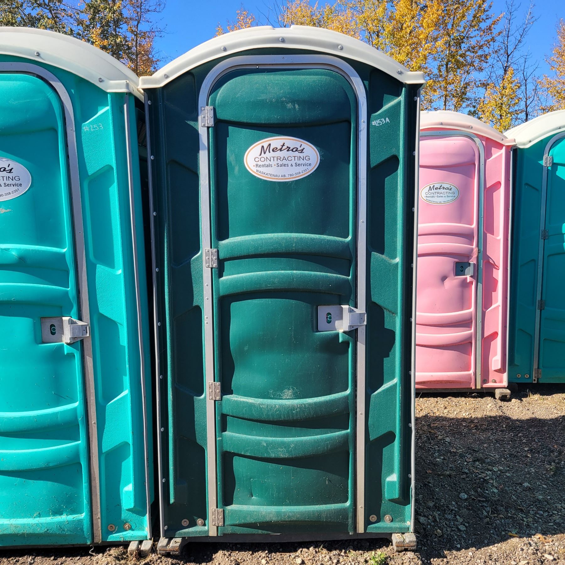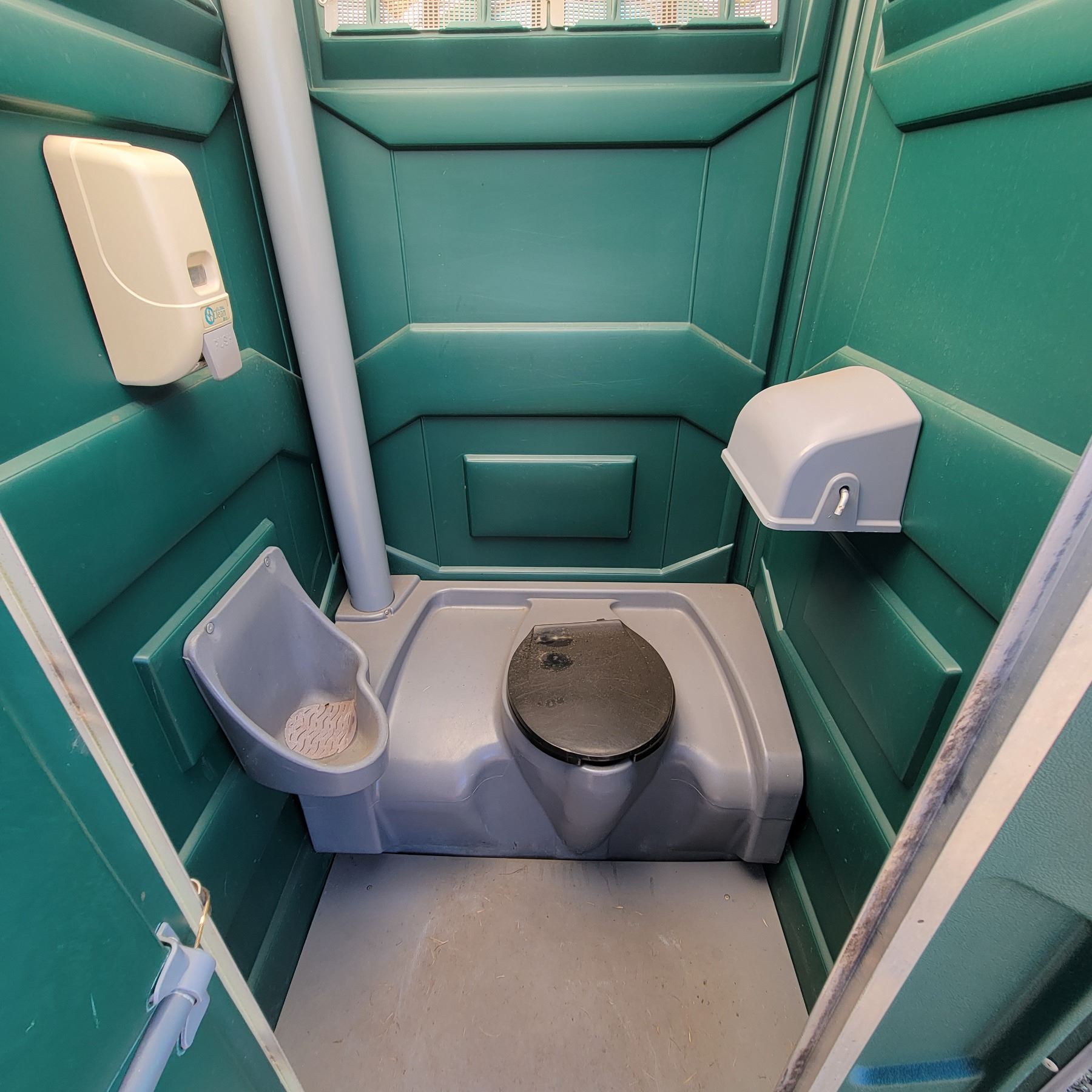 Porta Potty c/w hand sanitizer dispenser, urinal & TP dispenser