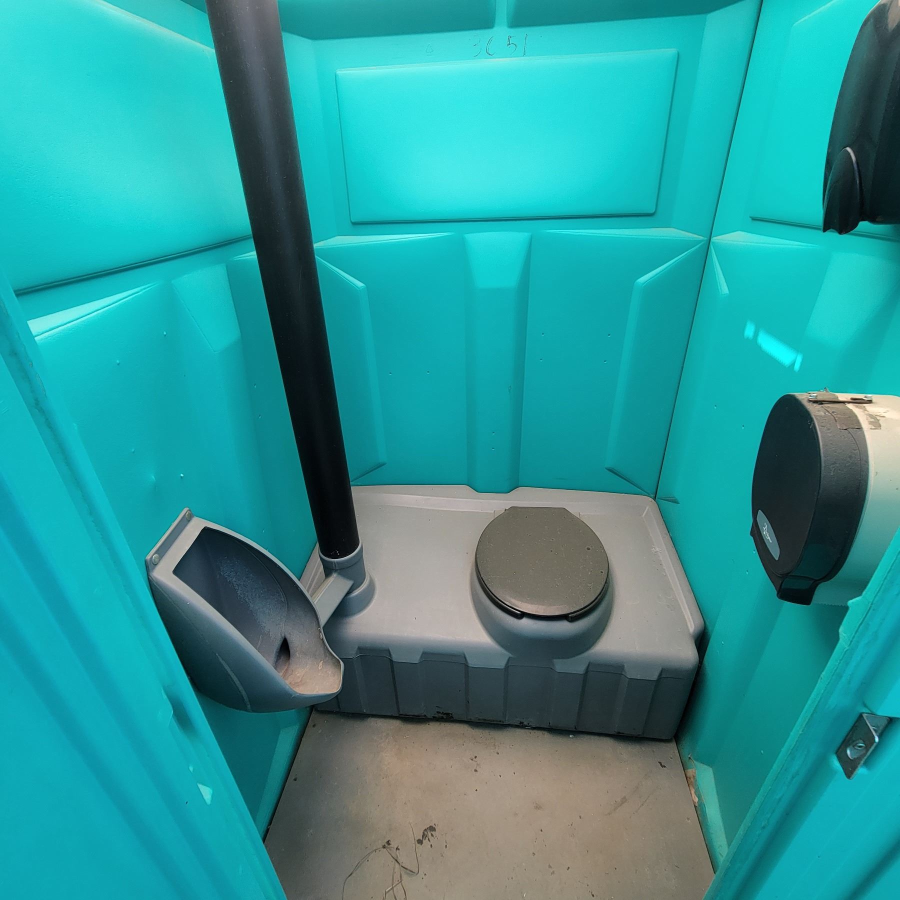 Porta Potty c/w hand sanitizer dispenser, urinal & TP dispenser